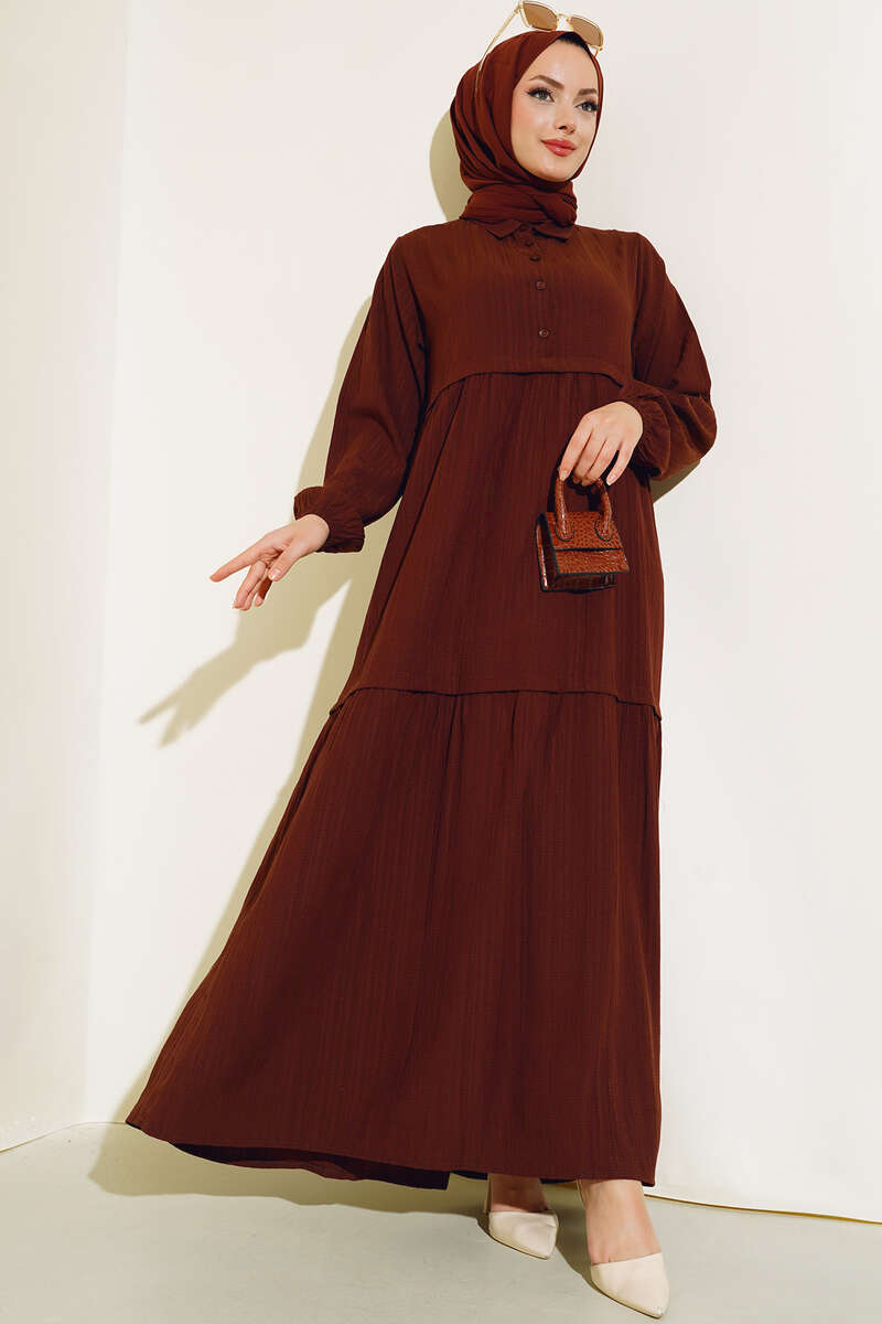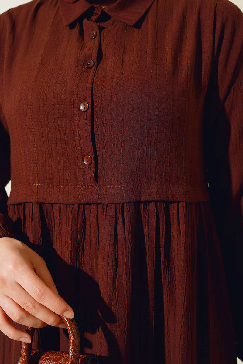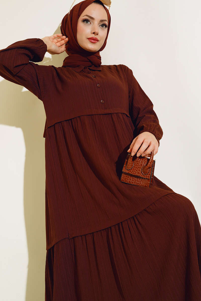 Yeni sezon elbise modelimiz sizlerle beraber. Elbisemiz Gömlek yaka olup, yarıya kadar düğmelidir. Kol bilekleri lastiklidir. Oldukça rahattır. Elbisemiz şık duruşuyla bahar ve yaz aylarınızın vazgeçilmezi olacaktır. Renk seçenekleri mevcuttur.