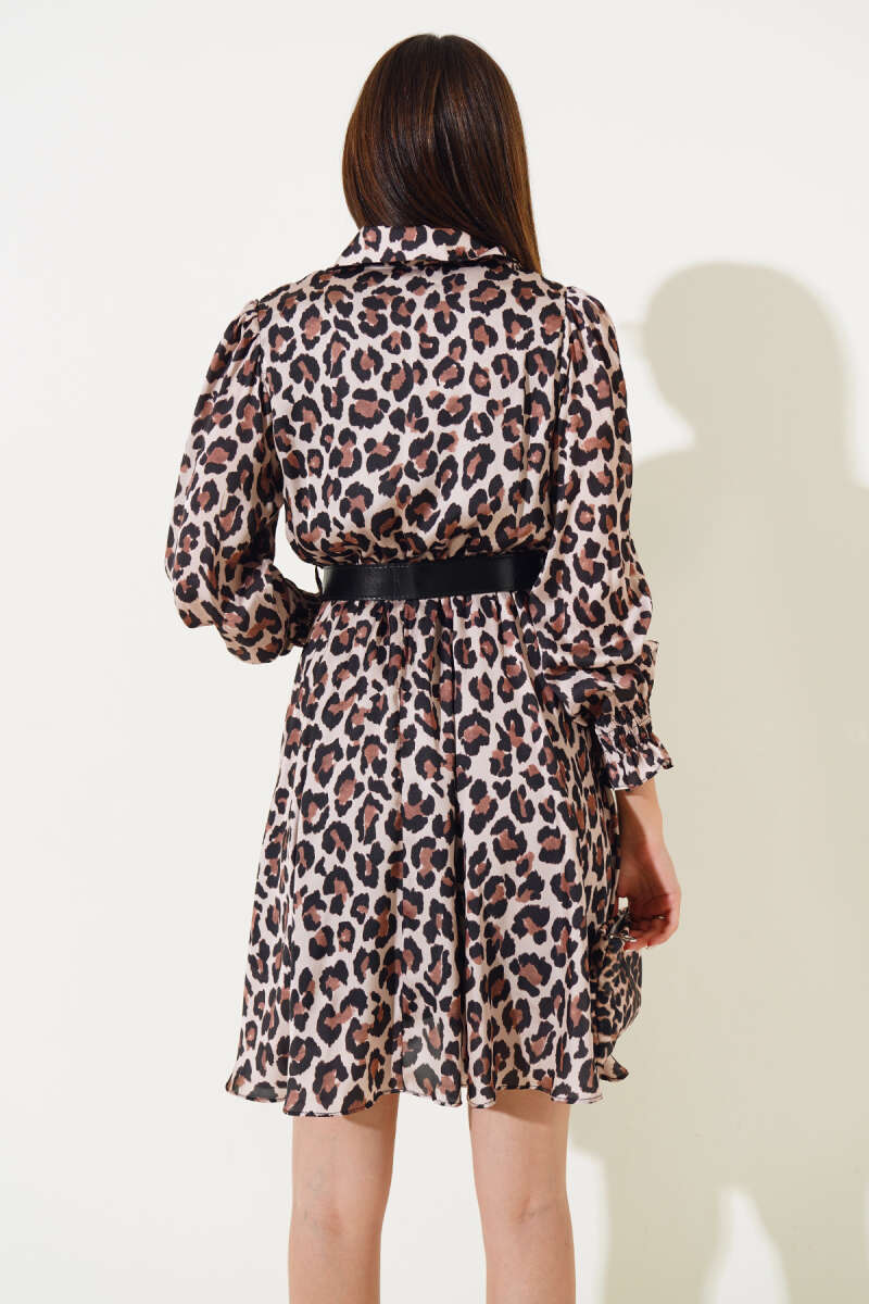 Bel Lastikli Leopar Desen Volanlı Bürümcük Elbise Leopar