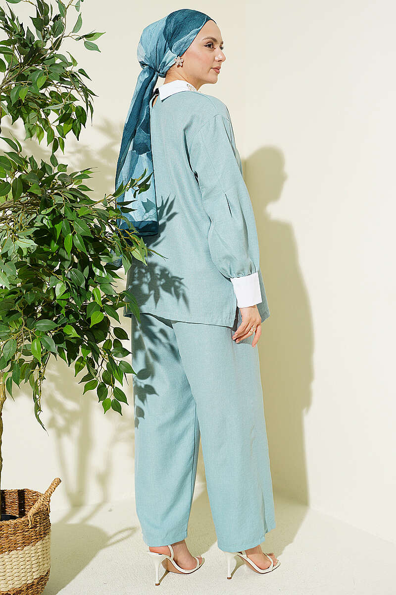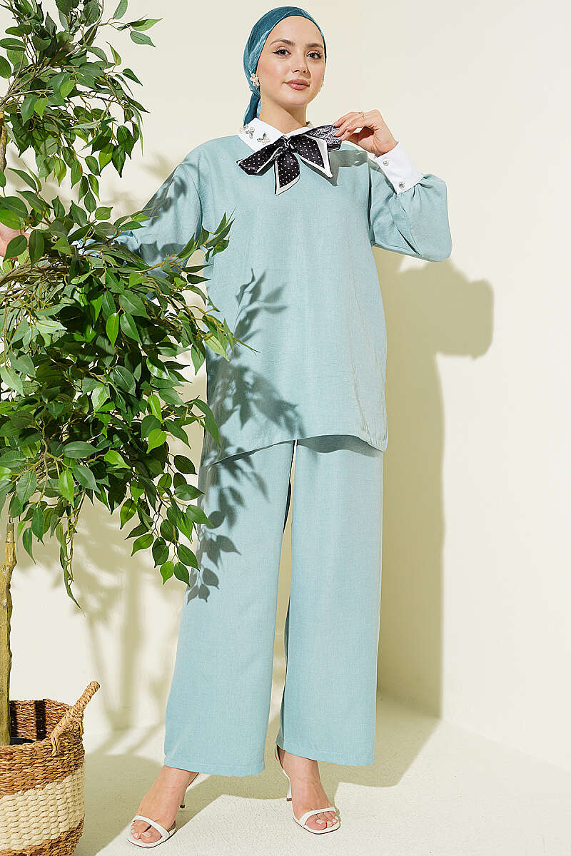 Gömlek Yaka Taşlı Salaş İkili Takım Çağla Yeşili