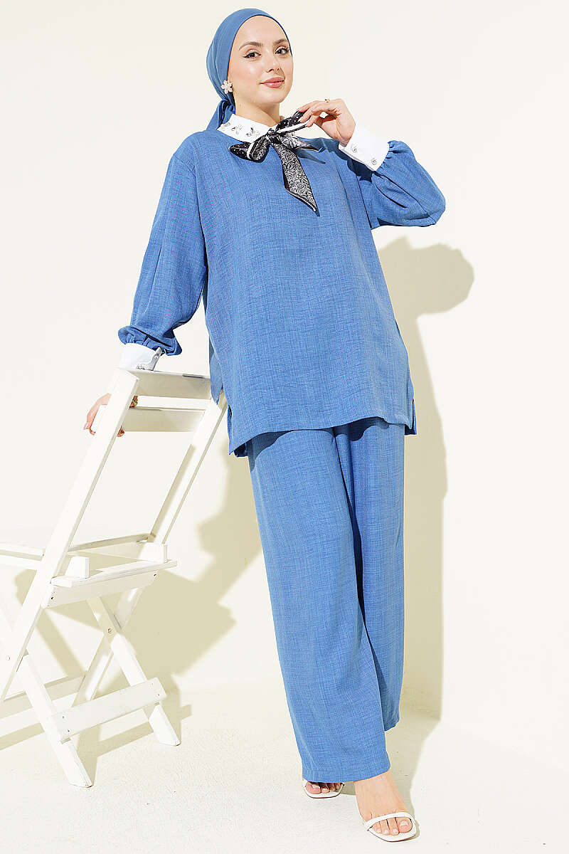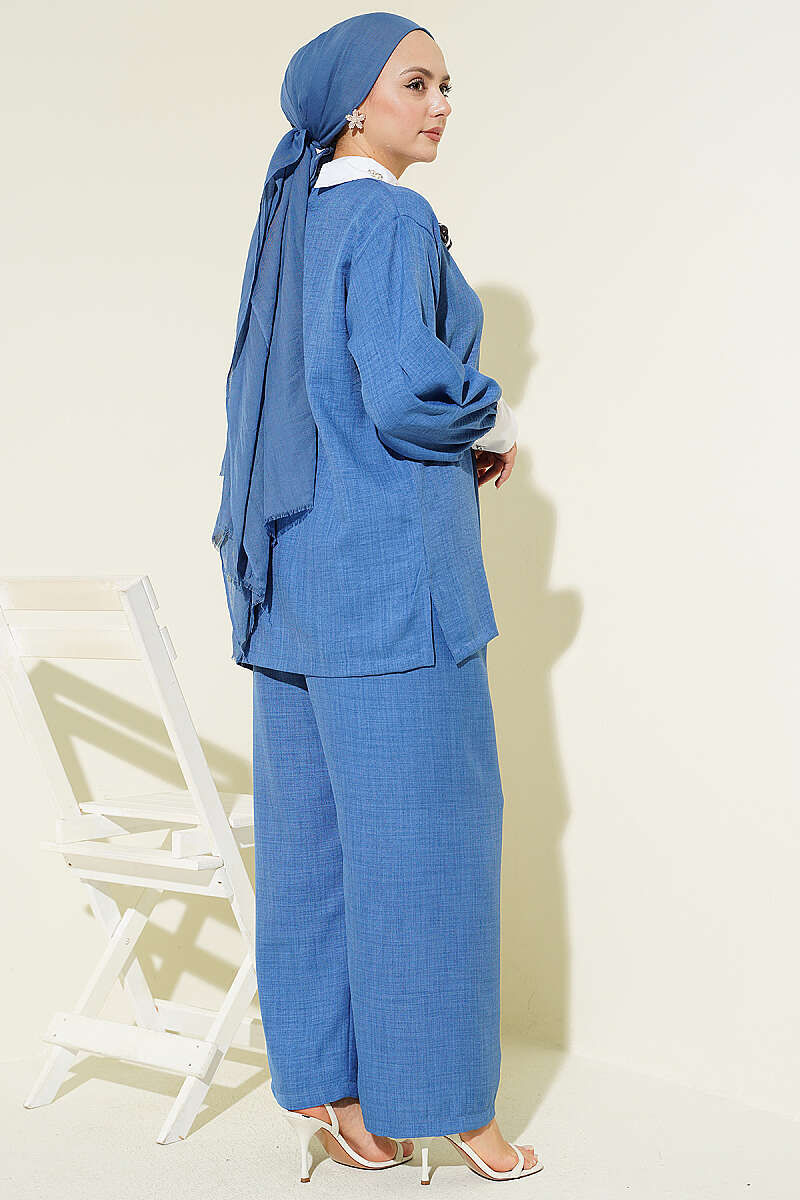 Gömlek Yaka Taşlı Salaş İkili Takım İndigo