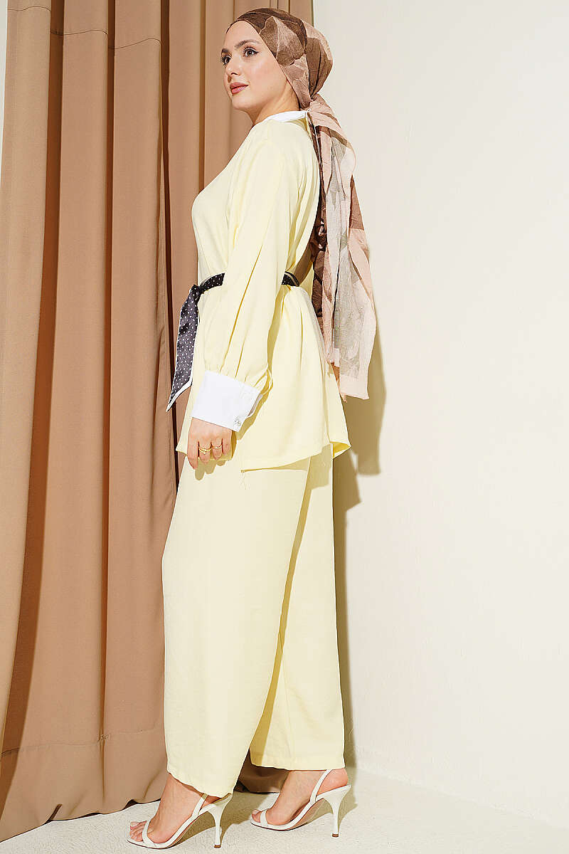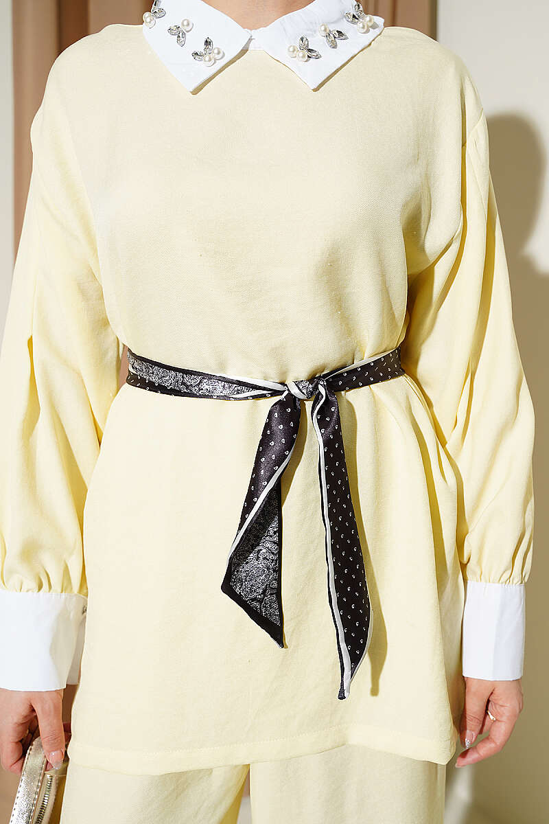 Gömlek Yaka Taşlı Salaş İkili Takım Sarı