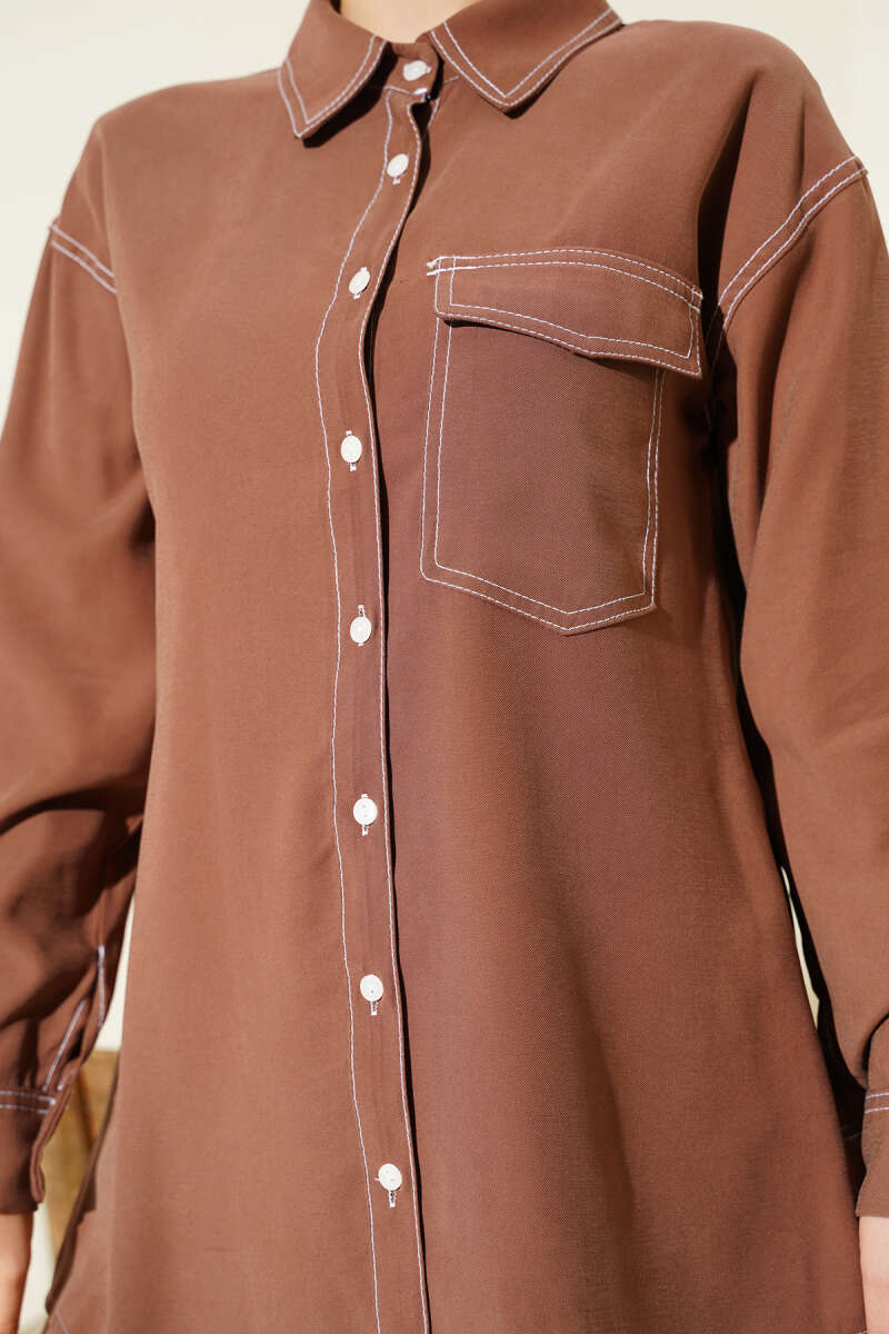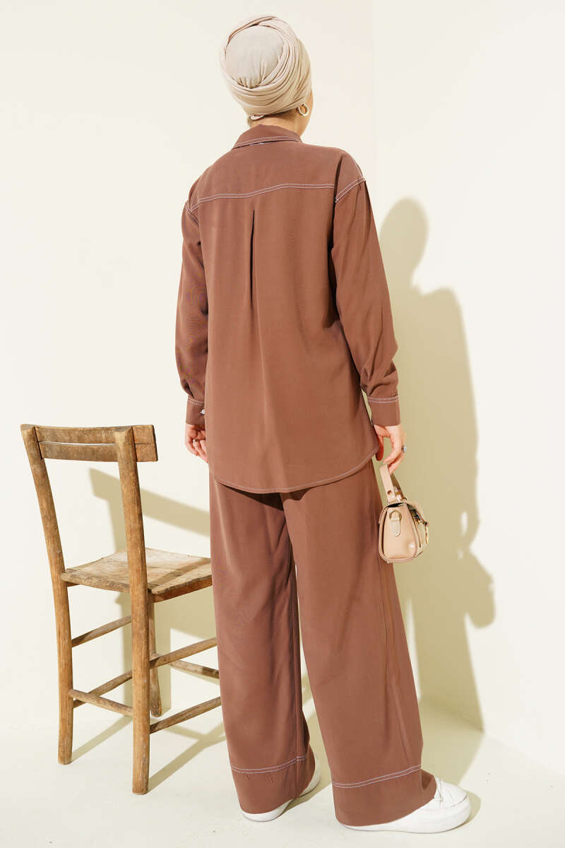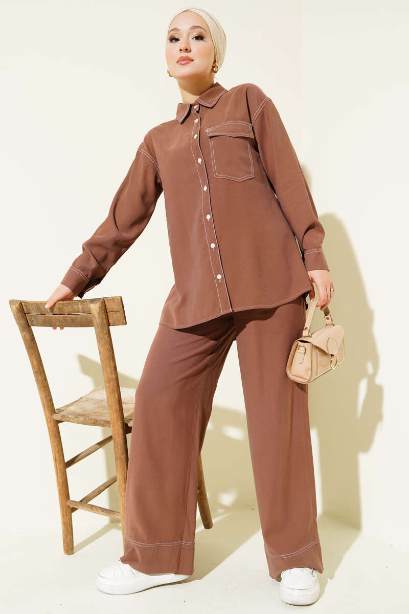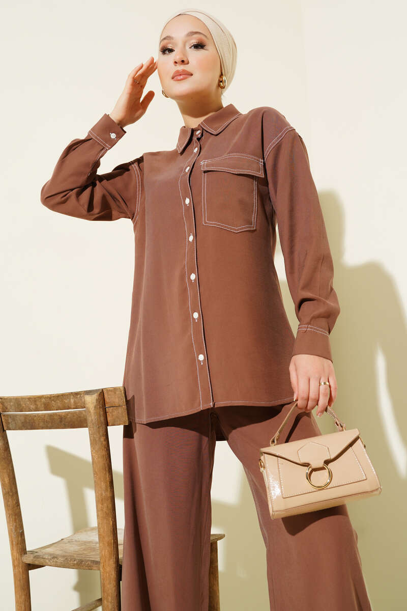 Gömlek Yaka Tek Cepli İkili Takım Taba