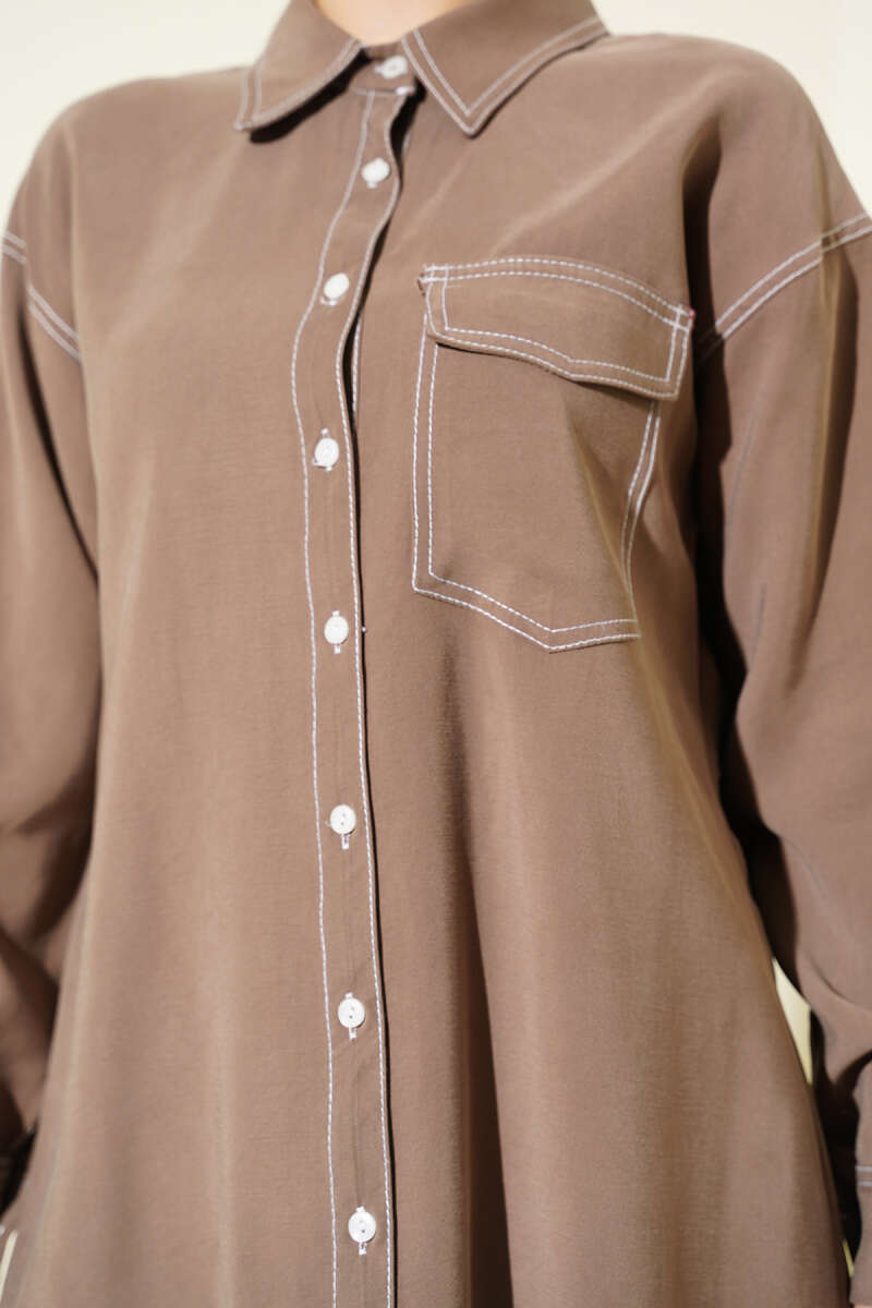 Gömlek Yaka Tek Cepli İkili Takım Taba