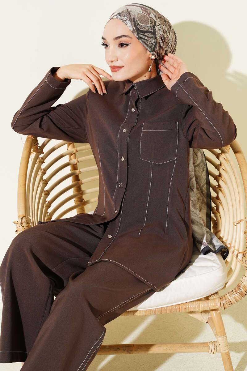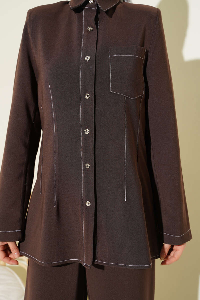 Gömlek Yaka Tek Cepli Takım Kahve