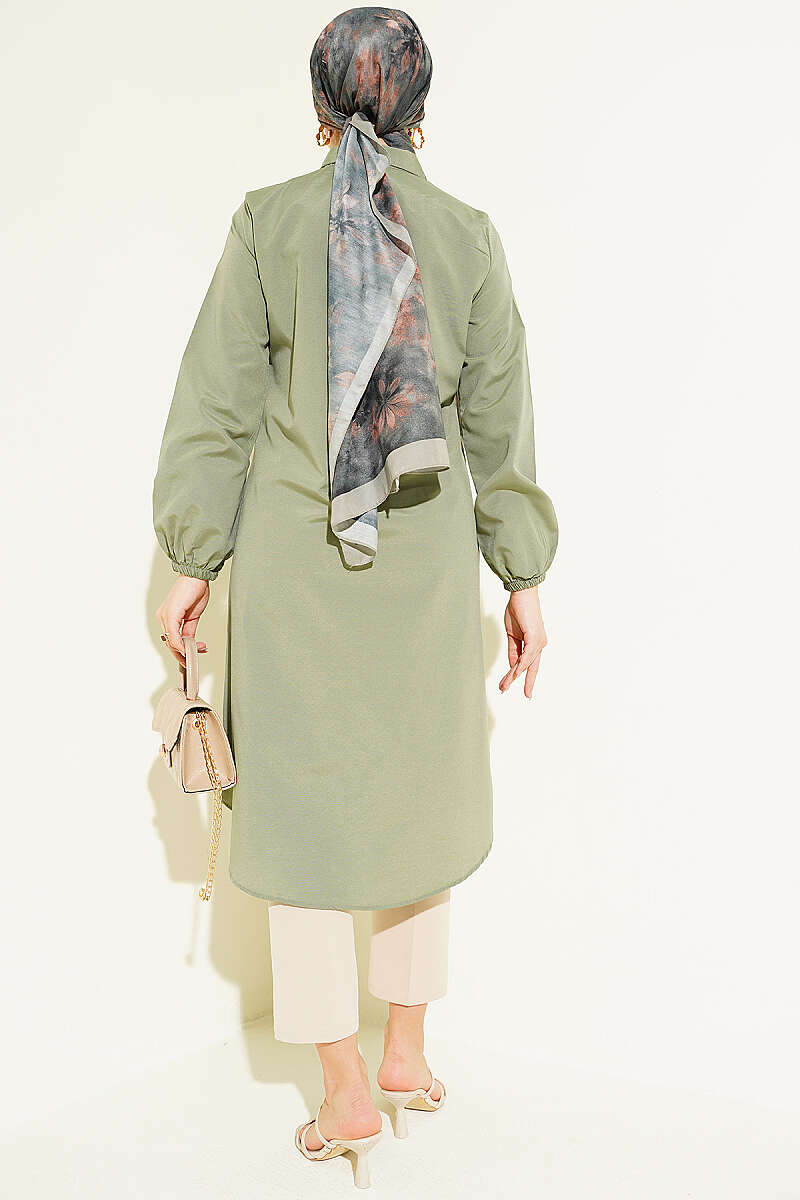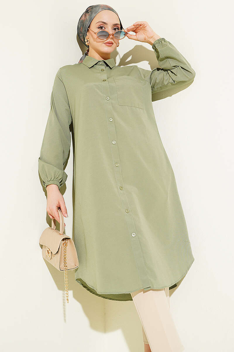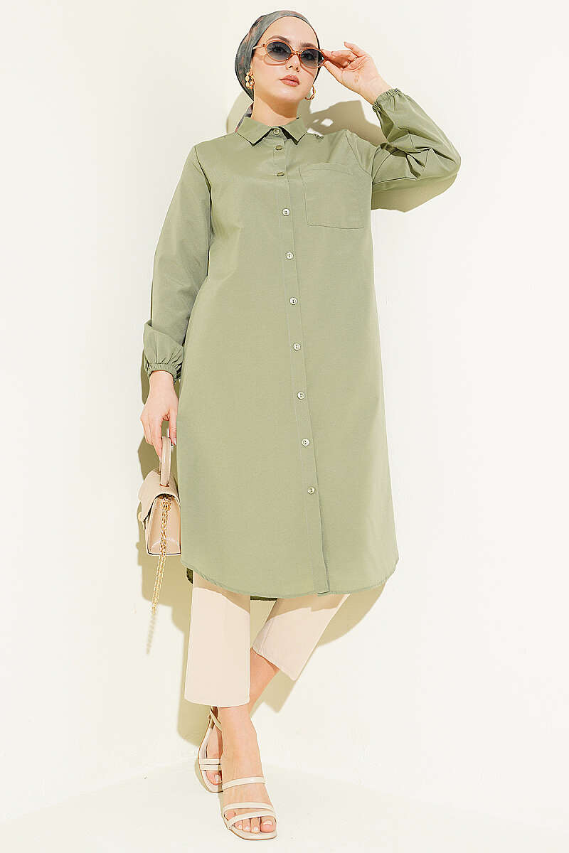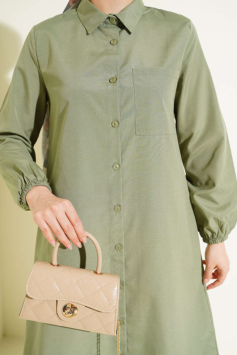 Gömlek Yaka Tek Cepli Uzun Gömlek Haki