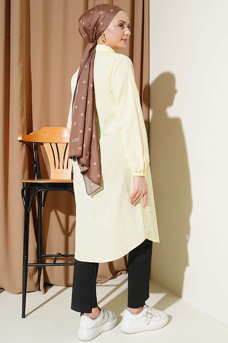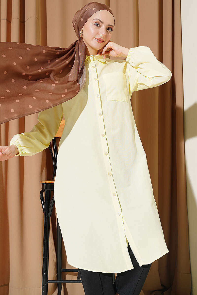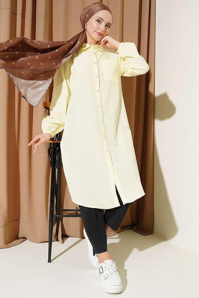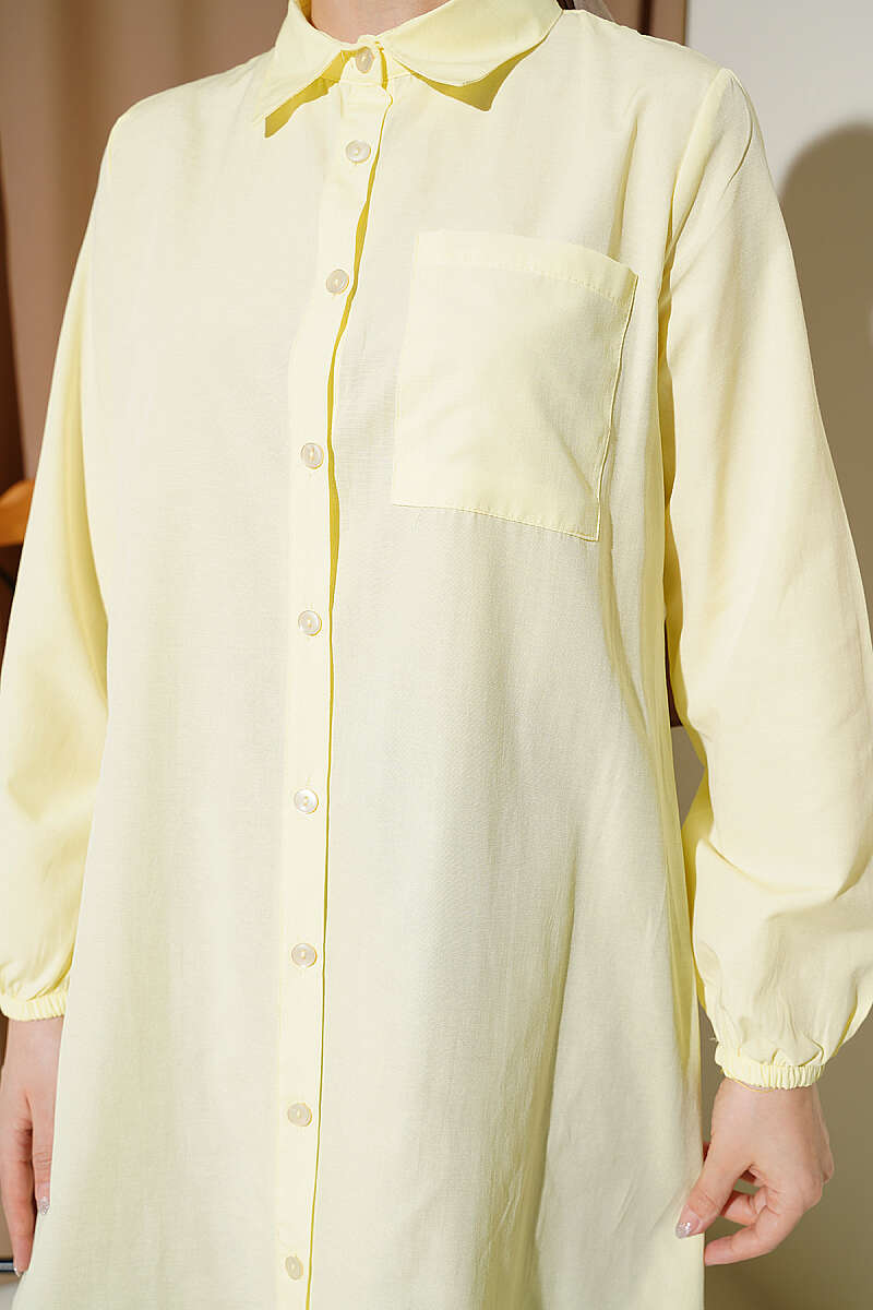 Gömlek Yaka Tek Cepli Uzun Gömlek Sarı