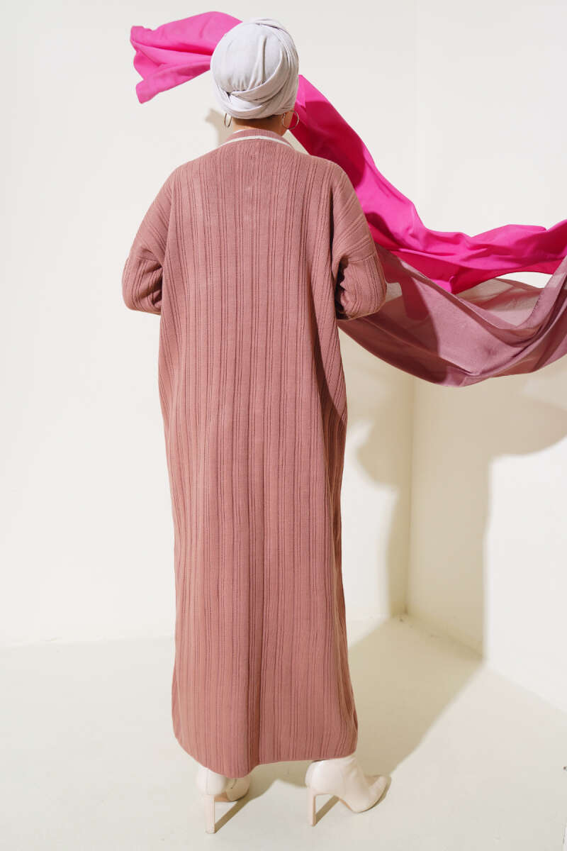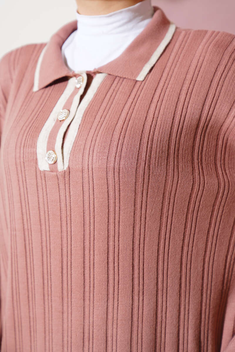 Gömlek Yaka Üç Düğmeli Triko Elbise Gül Kurusu