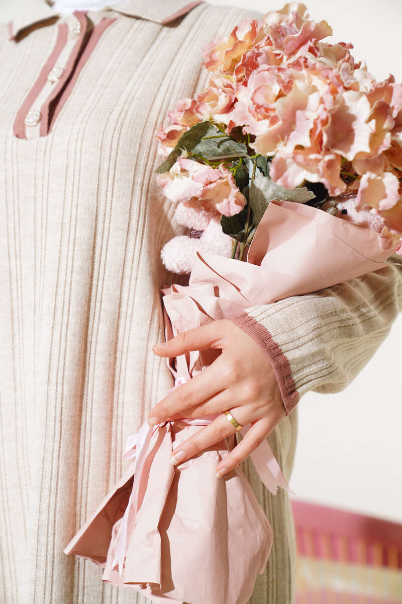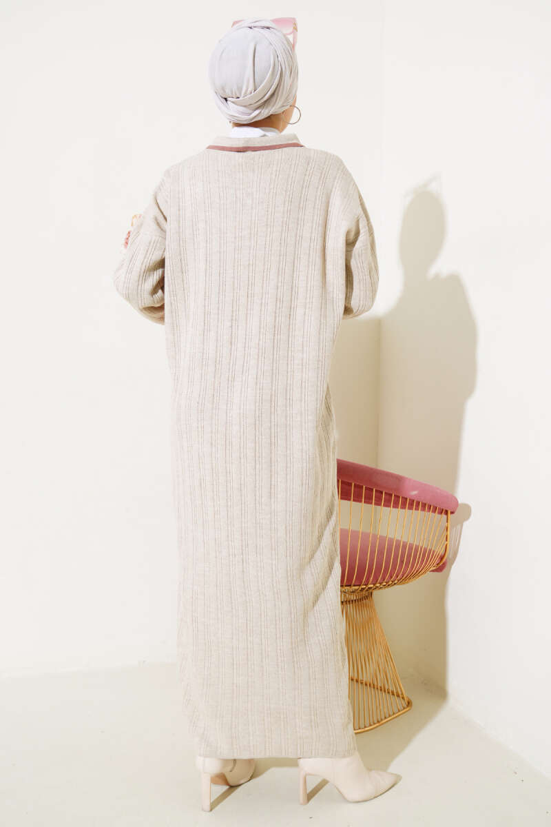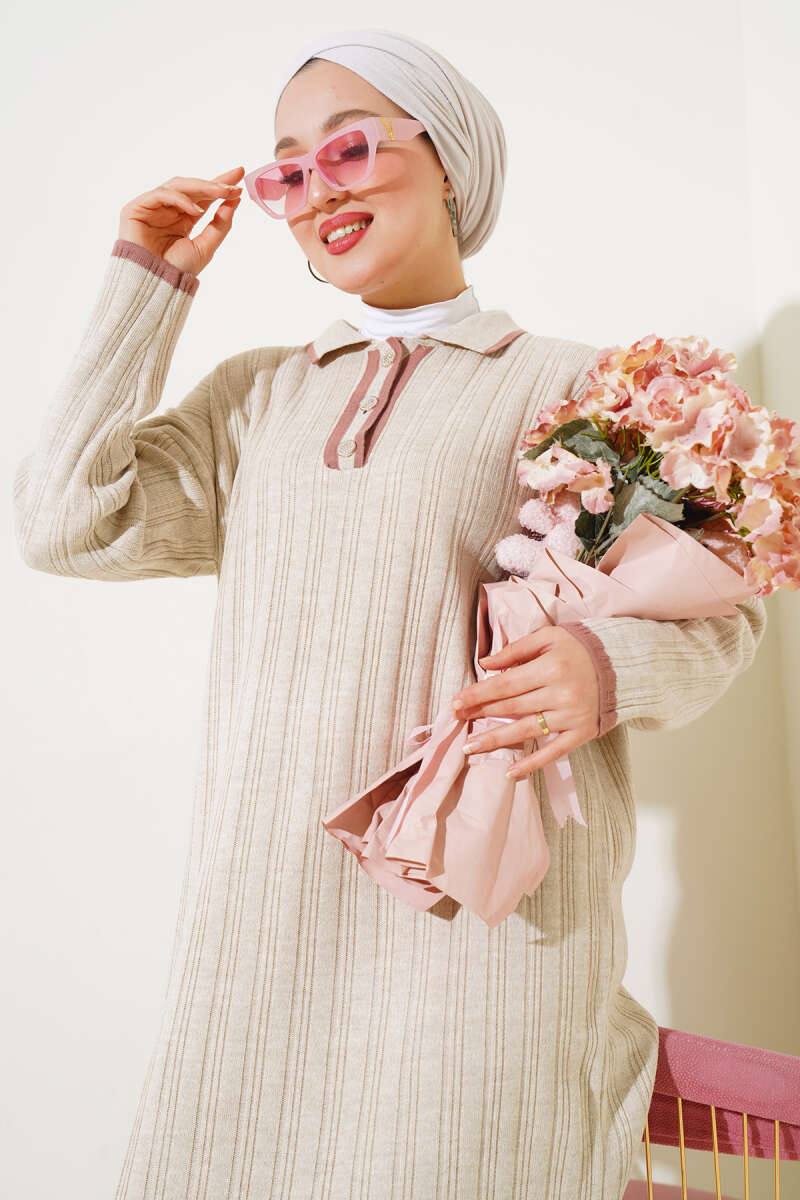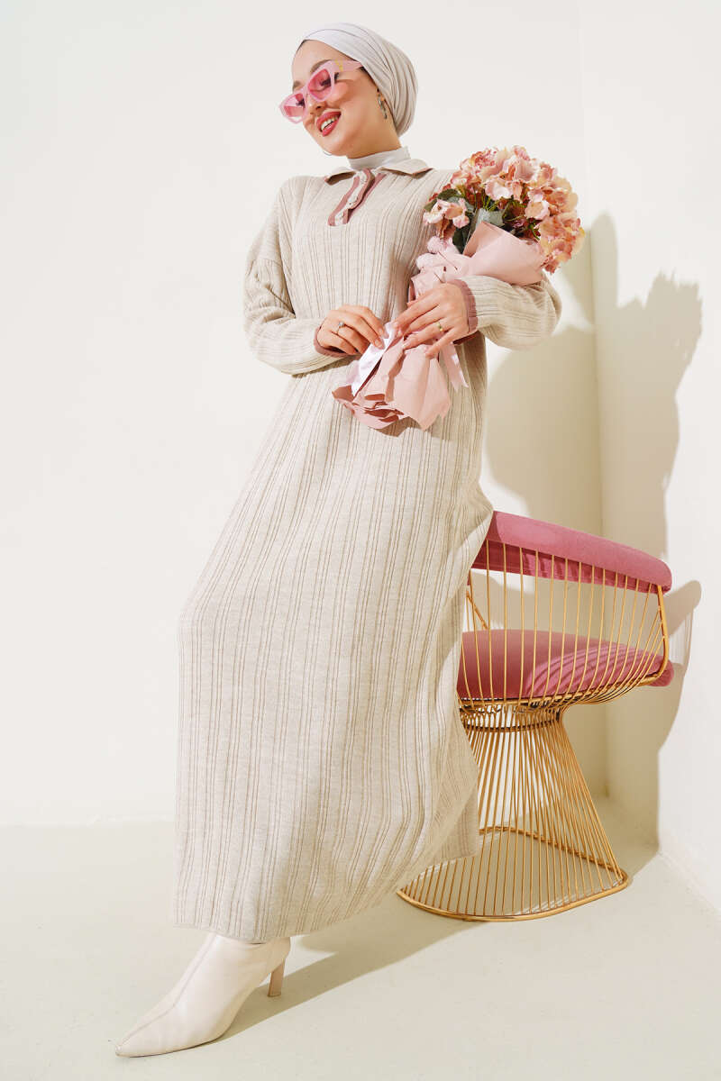 Gömlek Yaka Üç Düğmeli Triko Elbise Taş