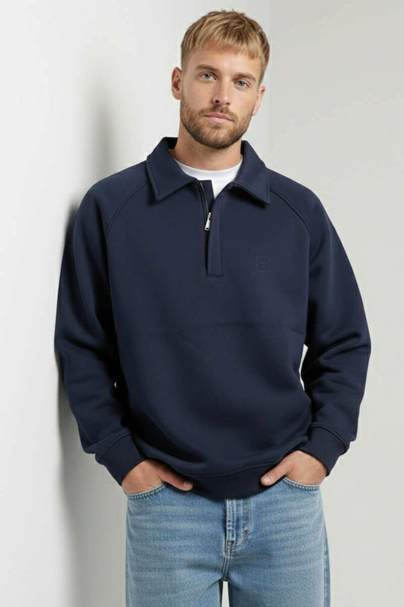 Gömlek Yaka Üç İplik Erkek Sweatshirt Mavi
