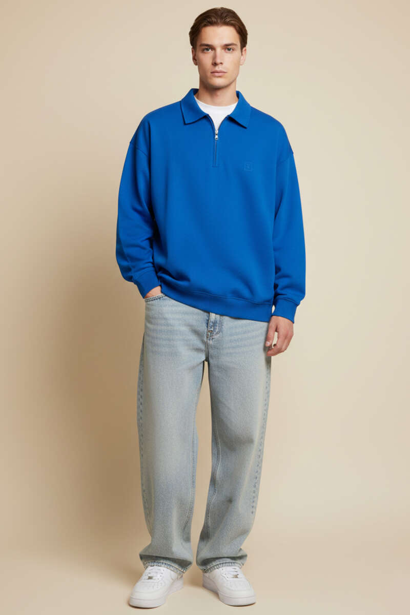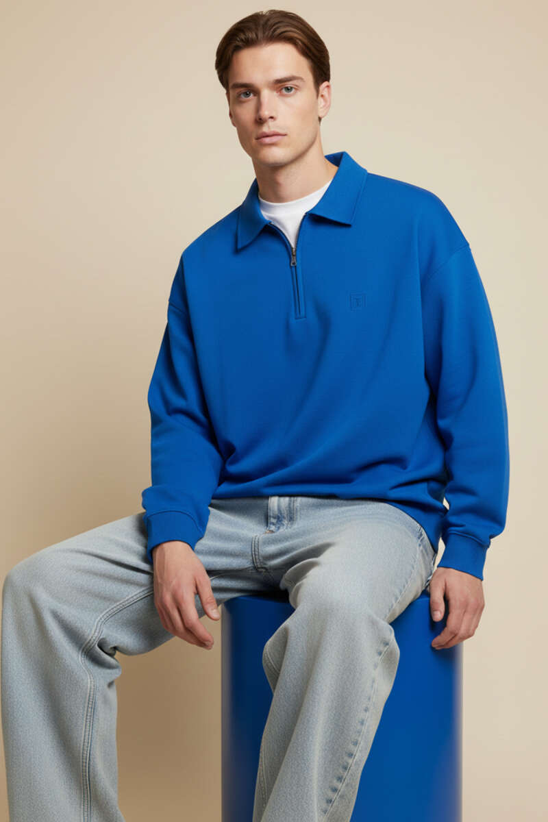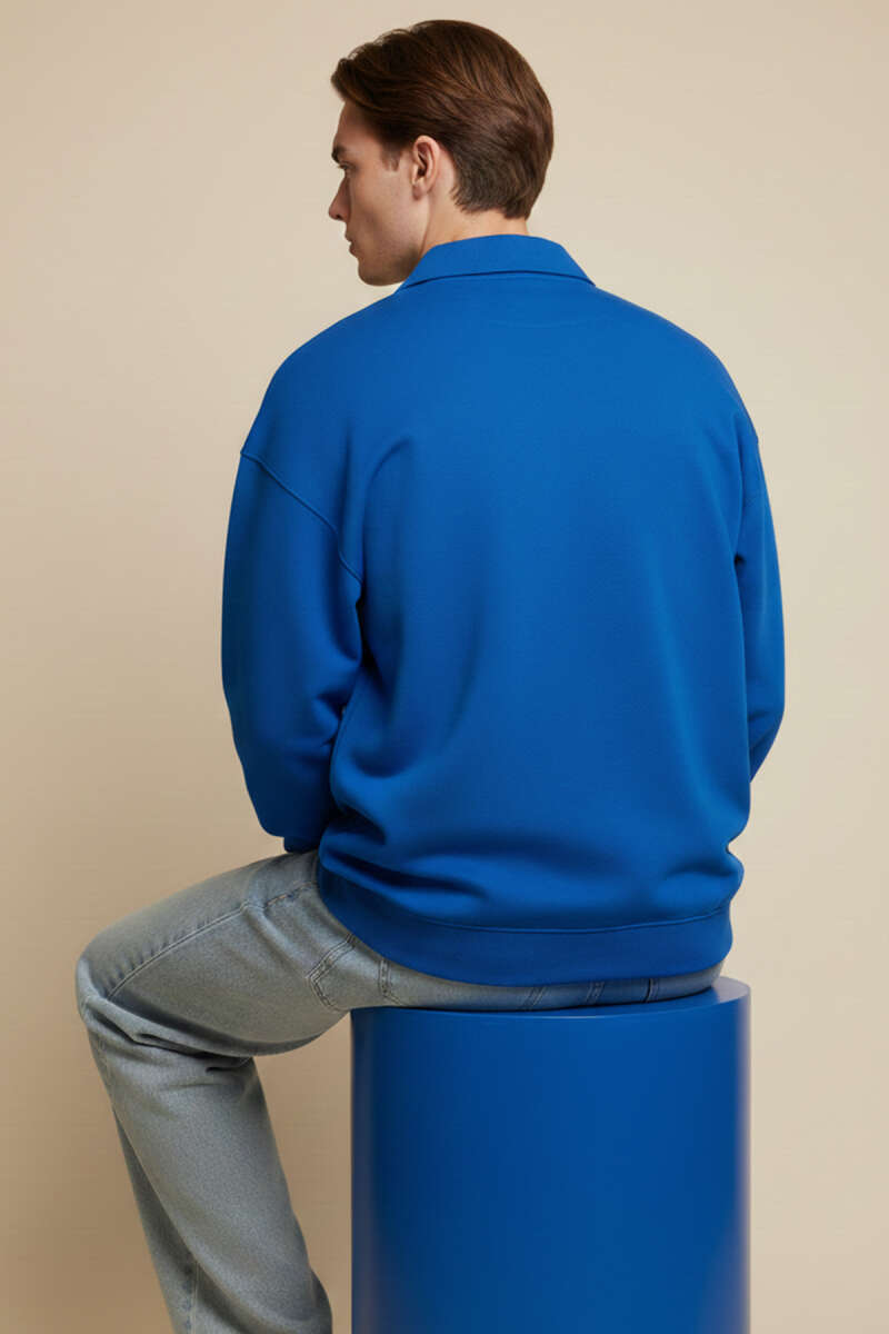 Gömlek Yaka Üç İplik Erkek Sweatshirt Lacivert