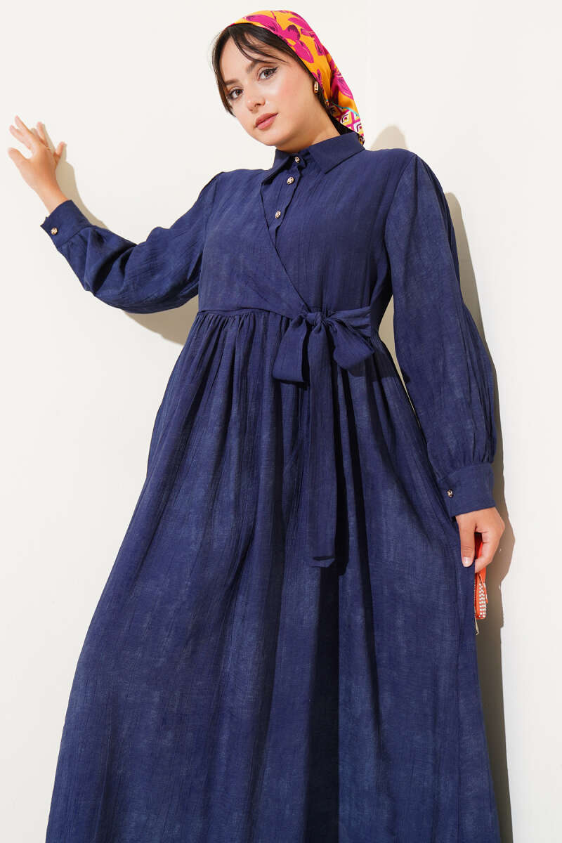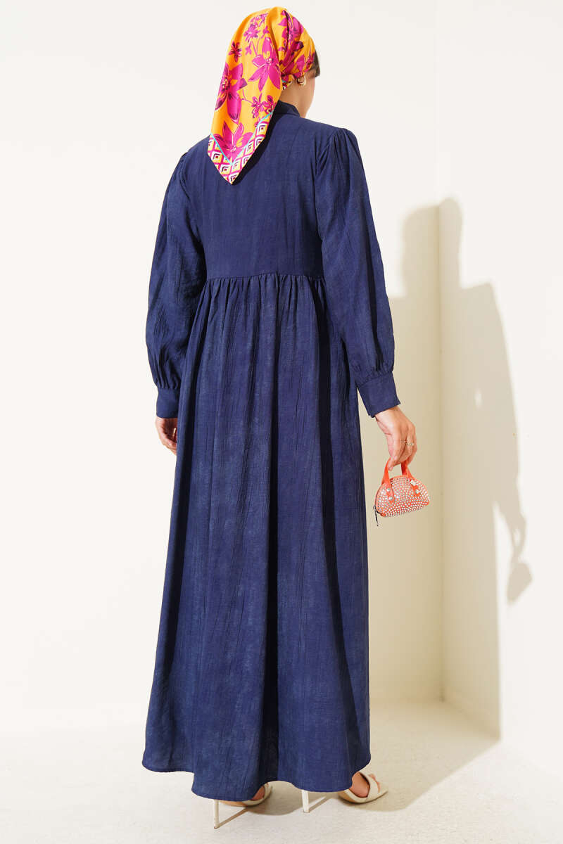 Yarım Yaka Fermuarlı Scuba Elbise Lacivert