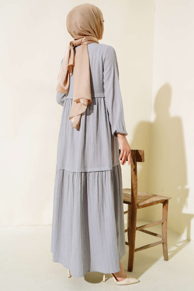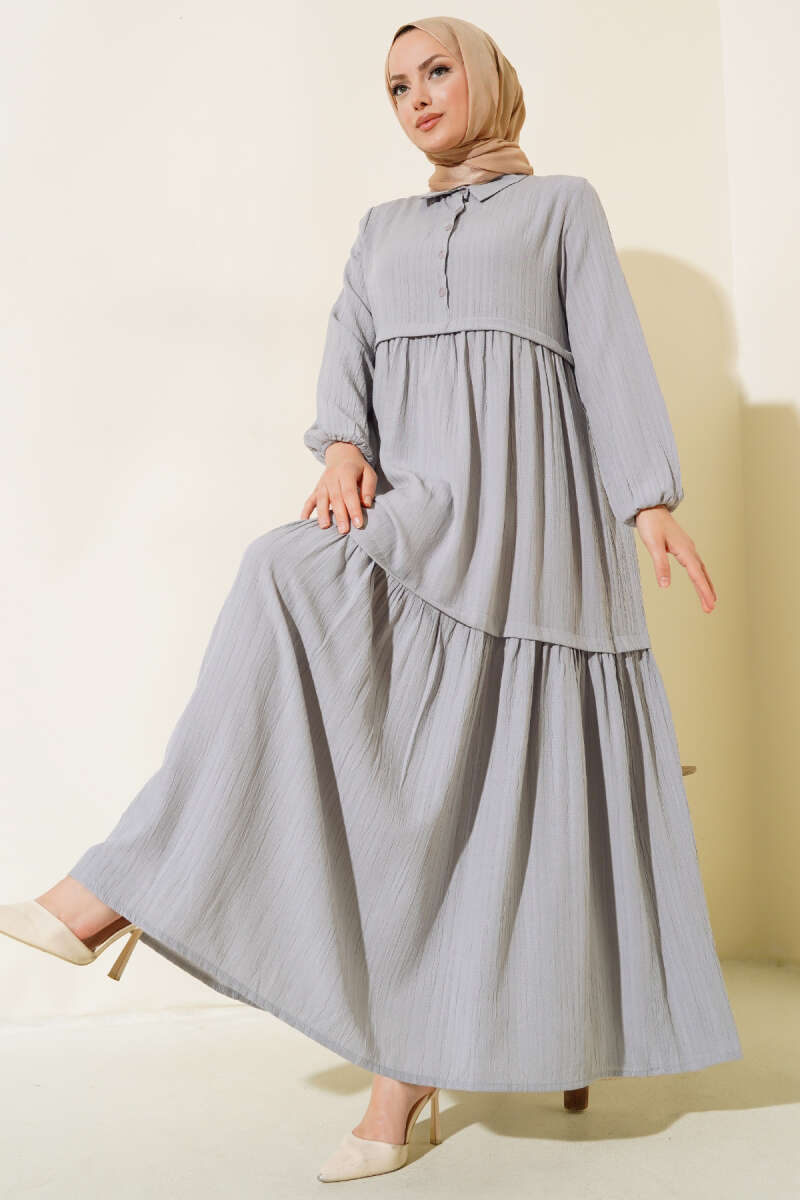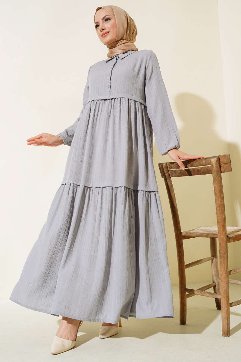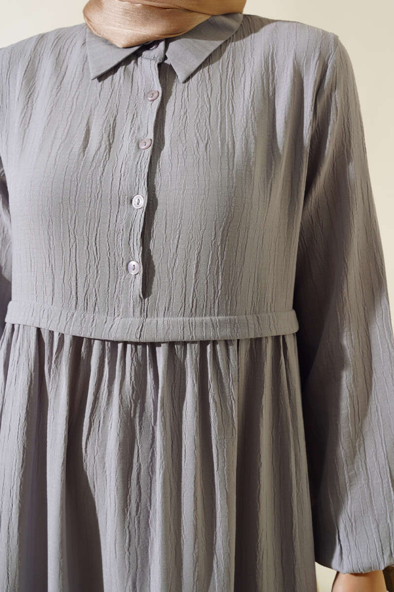 Gömlek Yaka Yarım Düğmeli Elbise Gri