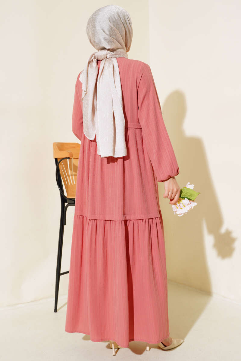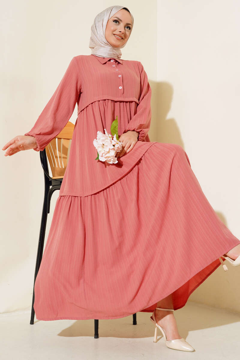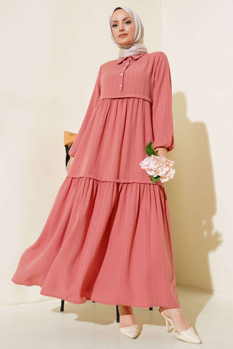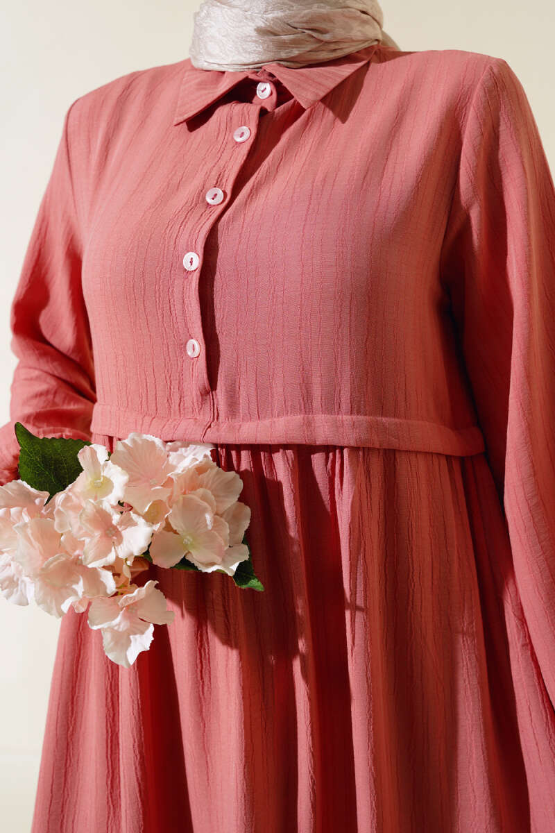 Gömlek Yaka Yarım Düğmeli Elbise Gül Kurusu
