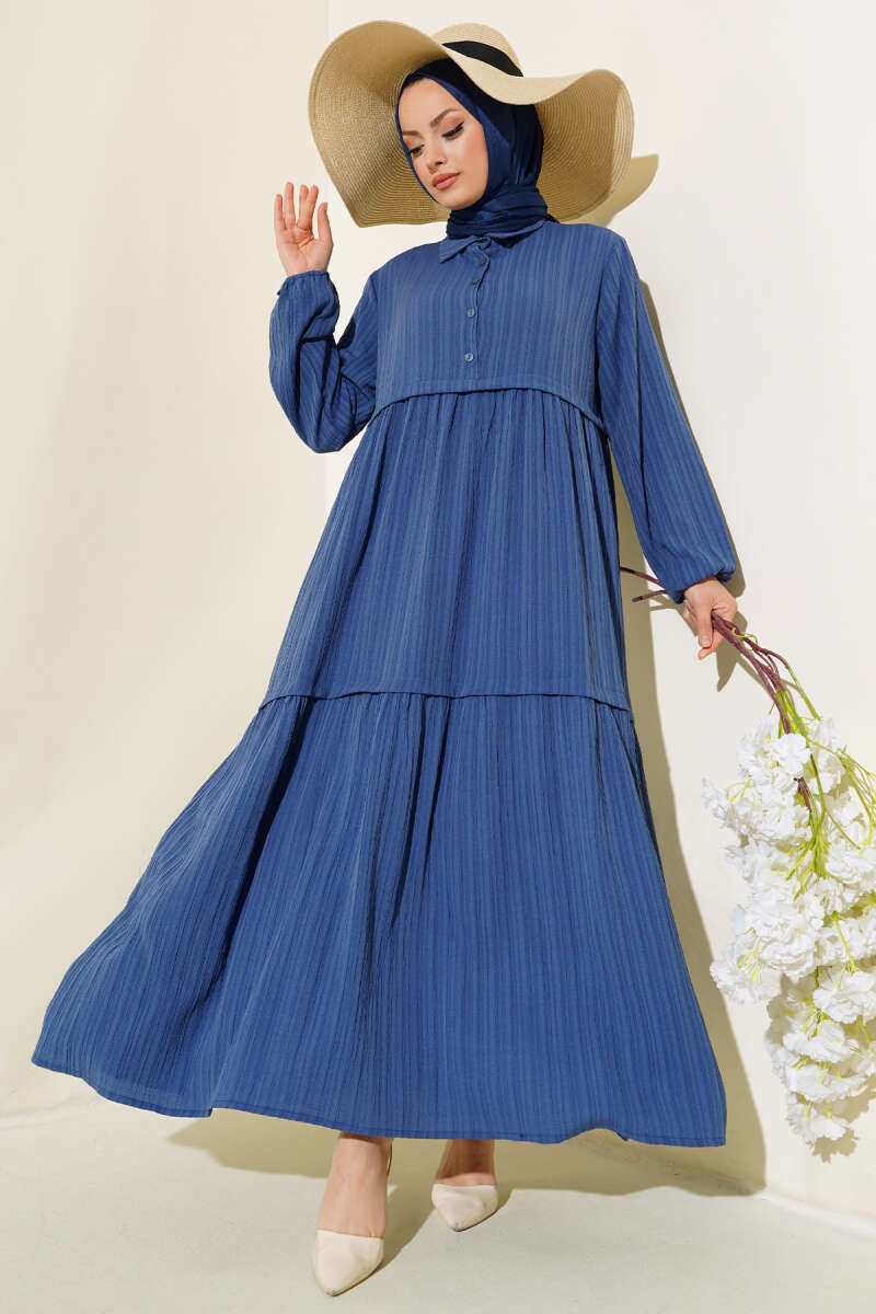 Yeni sezon elbisemiz sizlerle beraber. Elbisemiz gömlek yakadır. Kol bilekleri lastiklidir. Önü yarım düğmelidir. Kat modeldir. Astarsızdır. Elbisemiz renk seçenekleriyle yaz ve bahar aylarında ışıldamanızı sağlayacak.