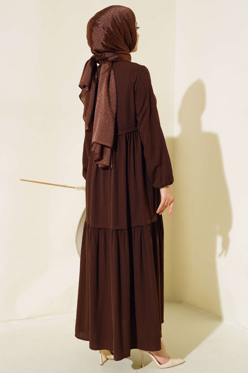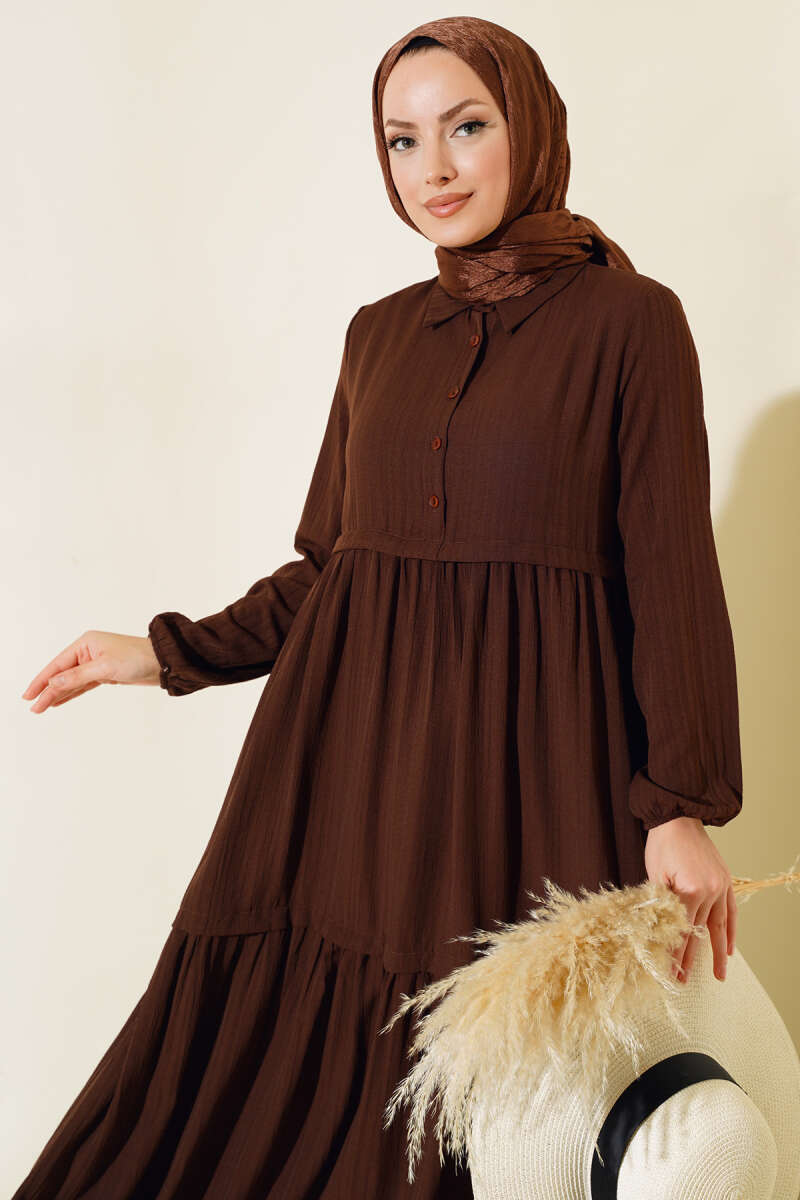 Gömlek Yaka Yarım Düğmeli Elbise Kahve