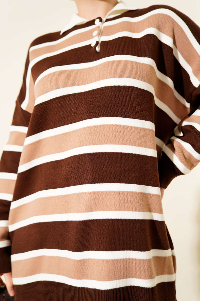 Loyşa Çıtçıtlı Kanguru Cepli Tunik Kahve