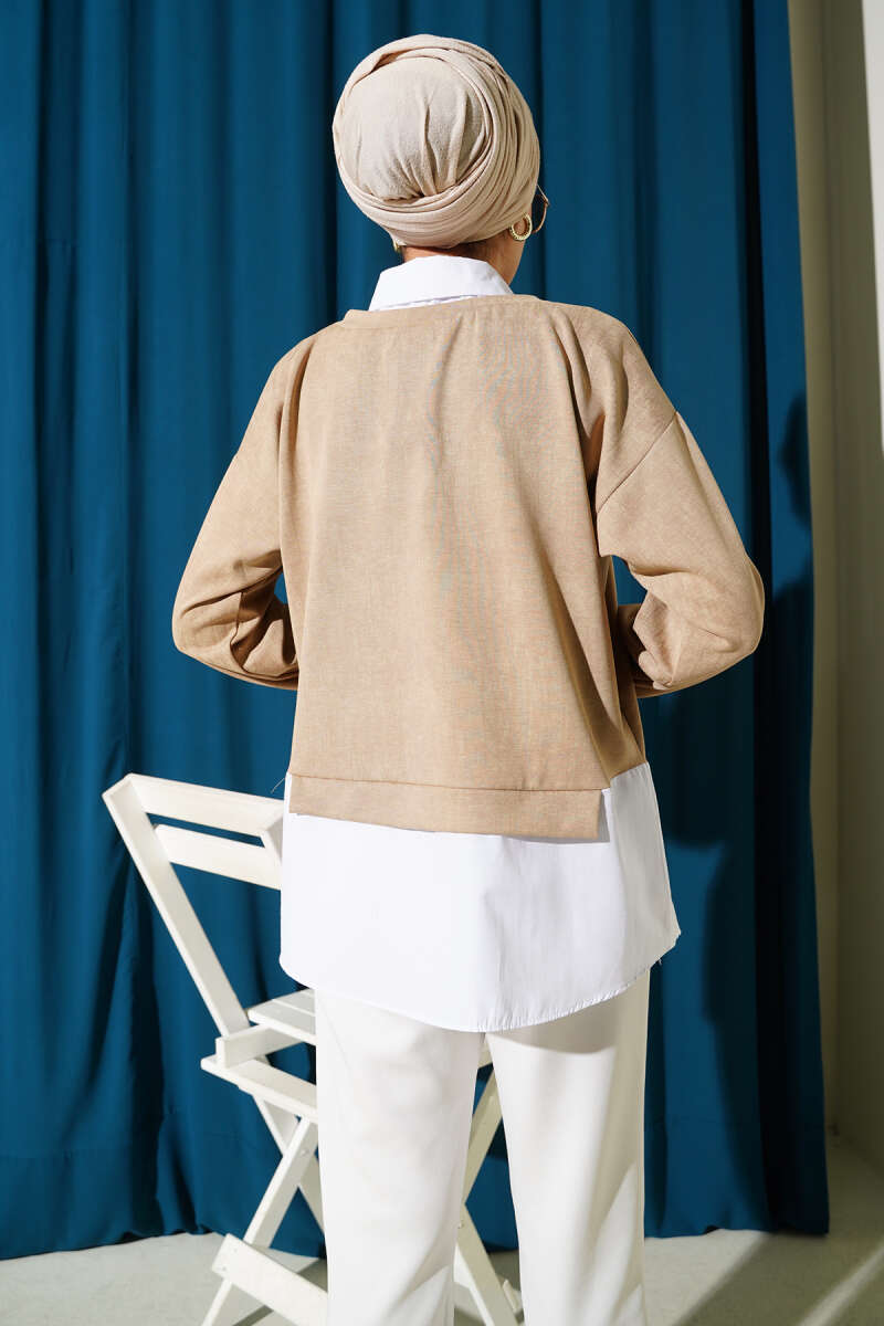 Gömlek Yakalı Granili Tunik Vizon Çizgili