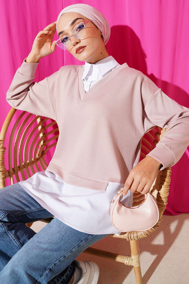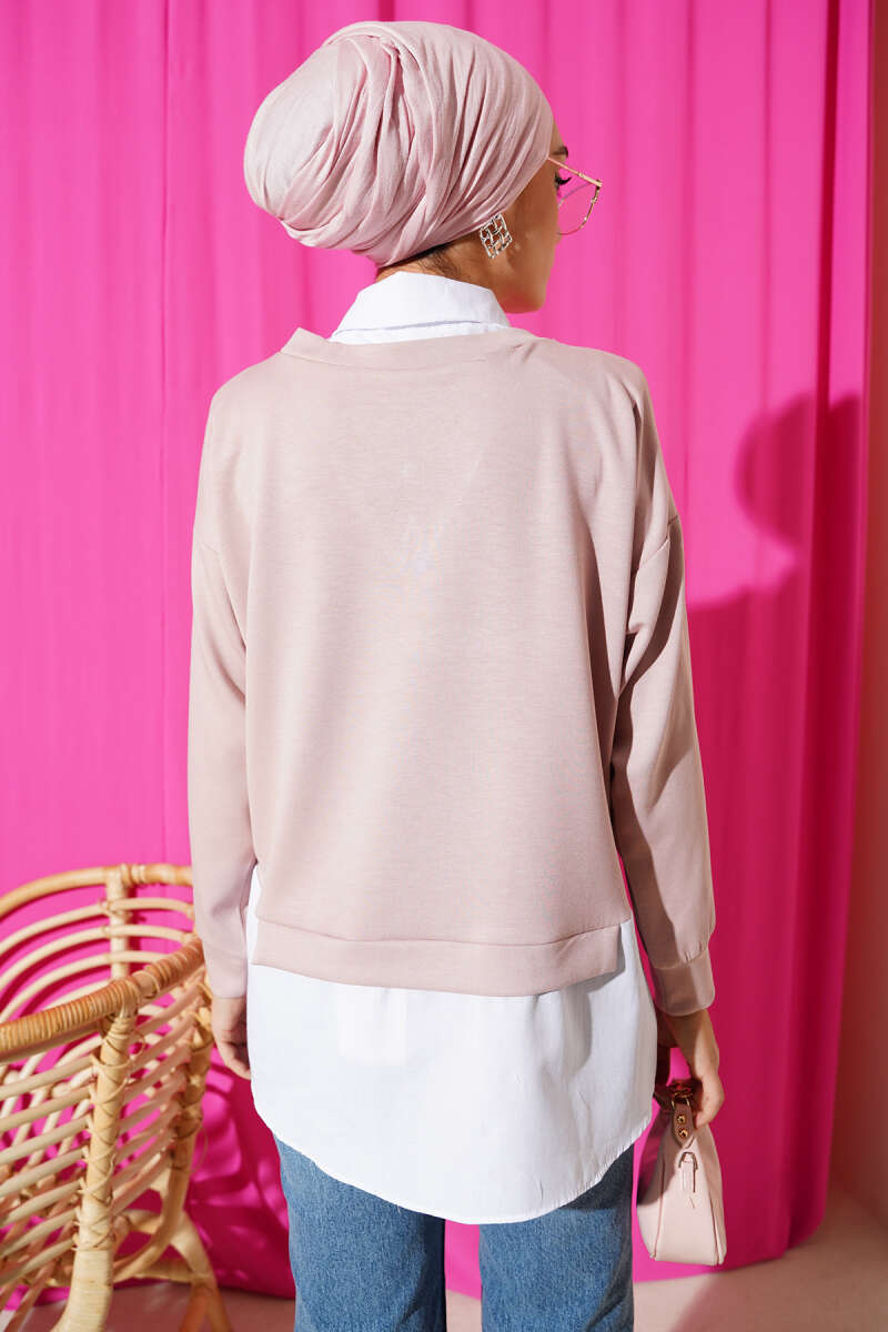 Gömlek Yakalı Granili Tunik Vizon Çizgili