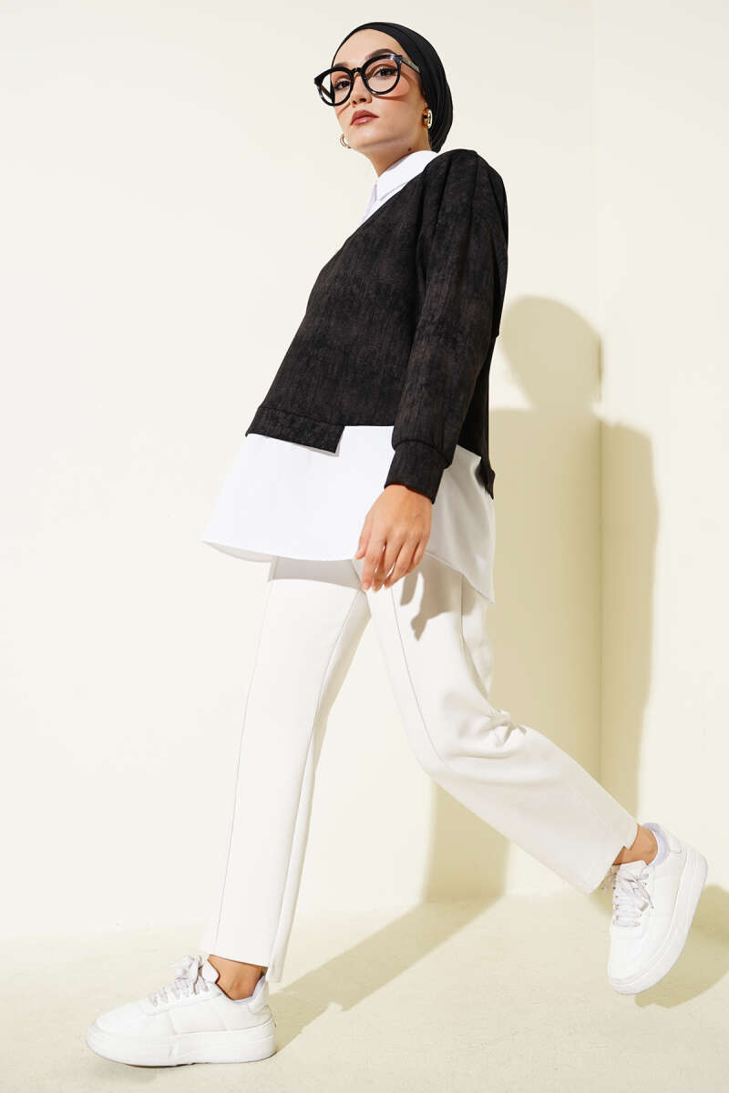 Gömlek Yakalı Granili Tunik Siyah Çizgili