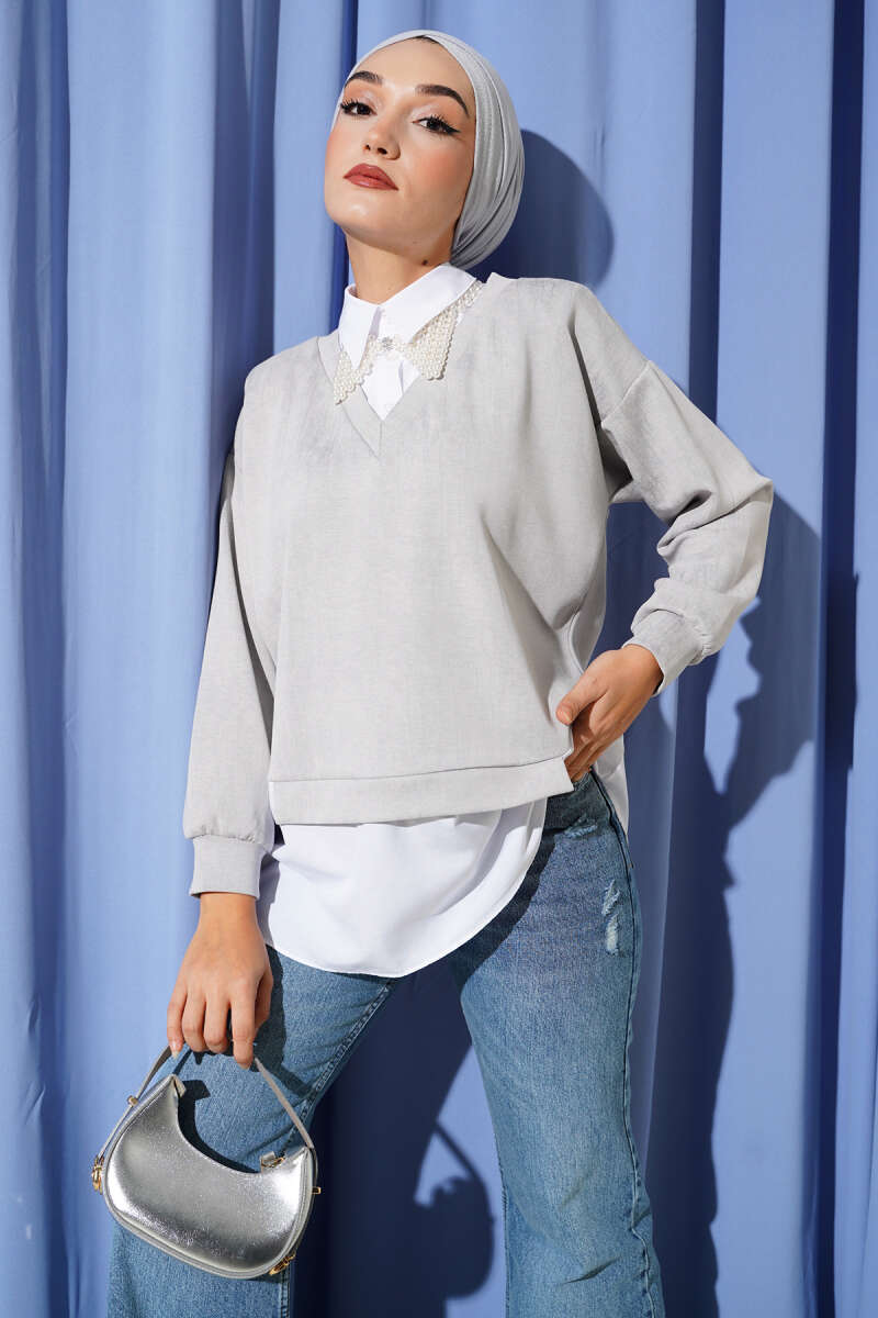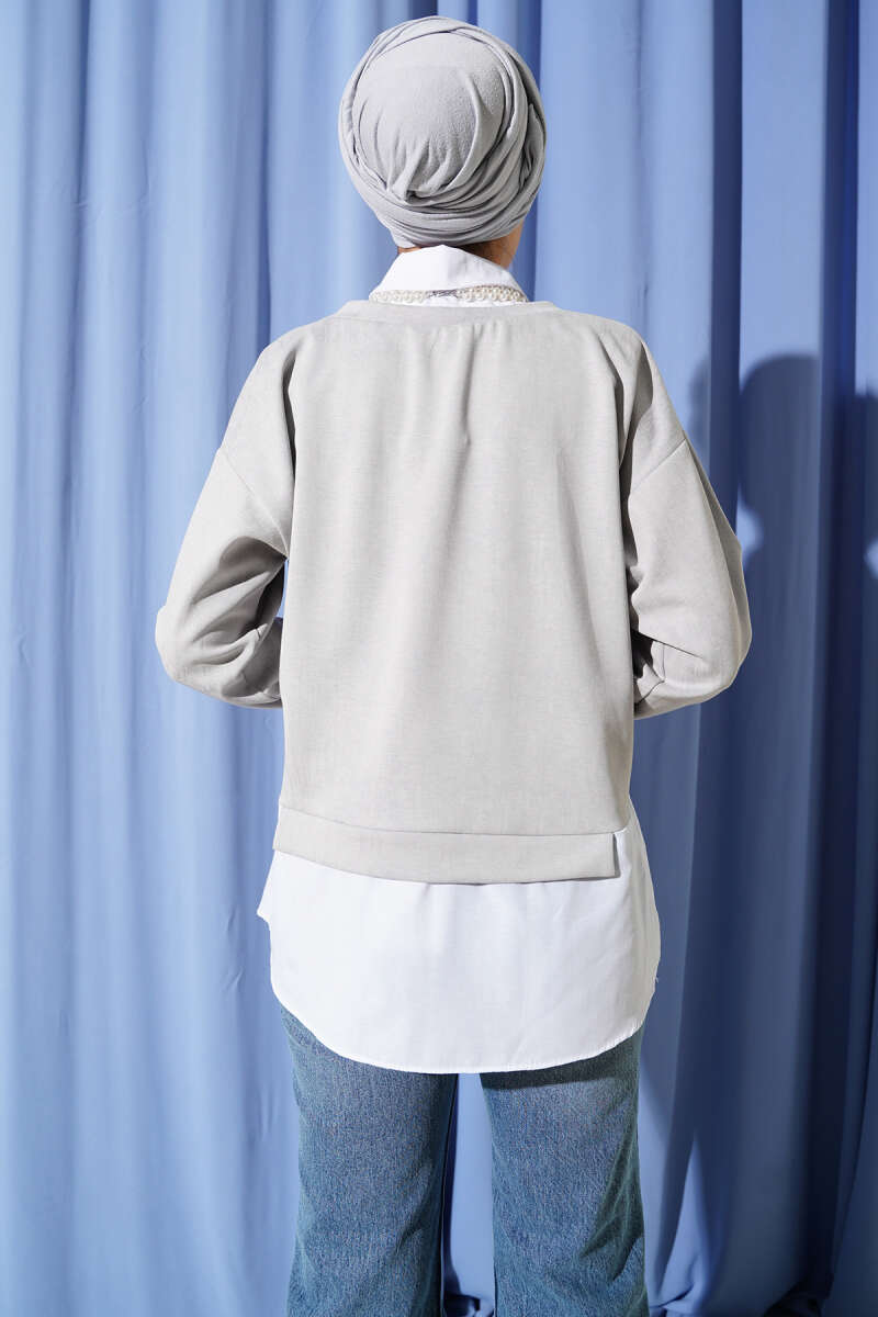 Üç İplik Yarım Çıtçıtlı Sweatshirt Gri