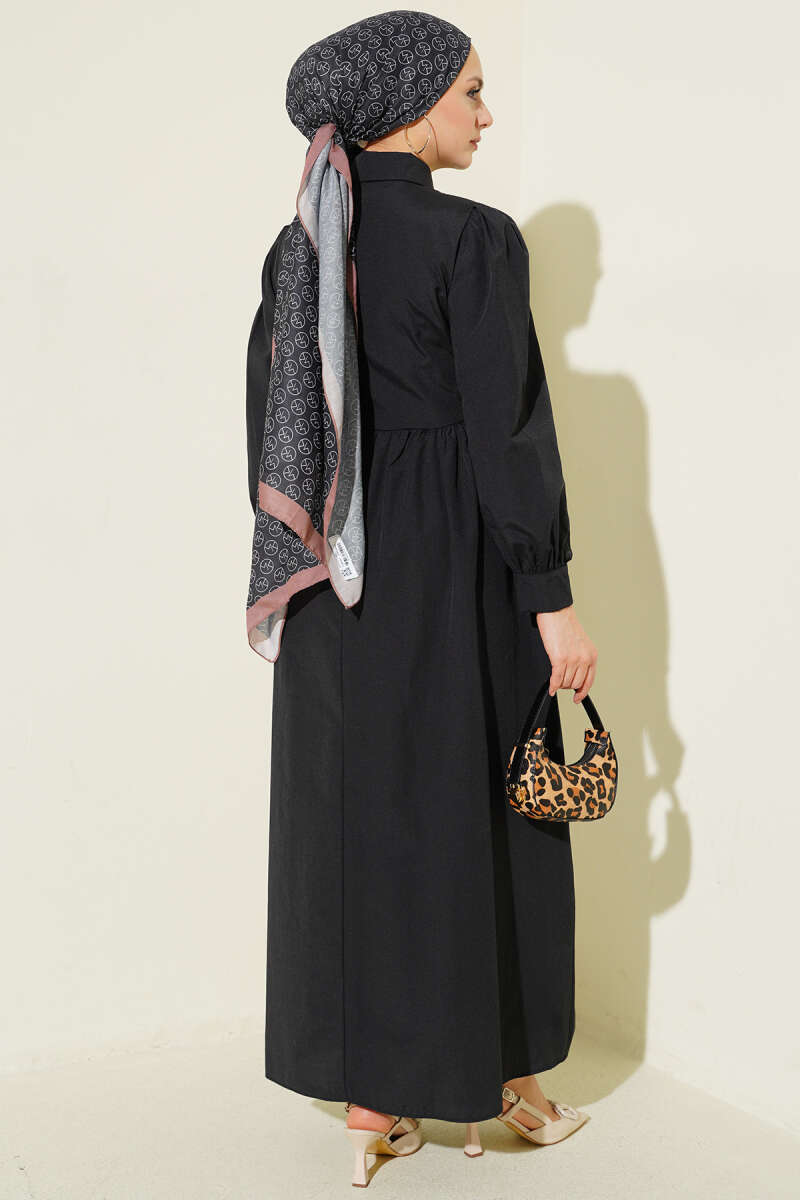 Bebe Yaka Dikiş Detaylı Elbise Siyah