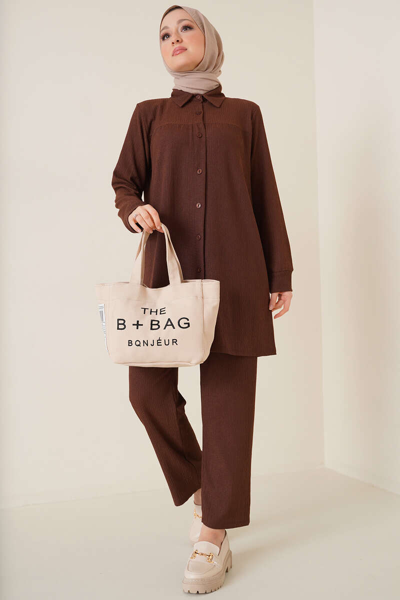 Yeni sezon ikili takım şık ve sportif görünümüyle sizler için geldi. Takımımız bürümcük yapıdadır. Gömleğimiz sade salaş tasarıma sahiptir. Önü düğmelidir. Uzundur. Pantolon beli lastikli cepsiz modeldir. Takımımız oldukça rahattır. Her ortamda rahatlıkla giyebilirsiniz. Farklı renk seçenekleri mevcuttur.