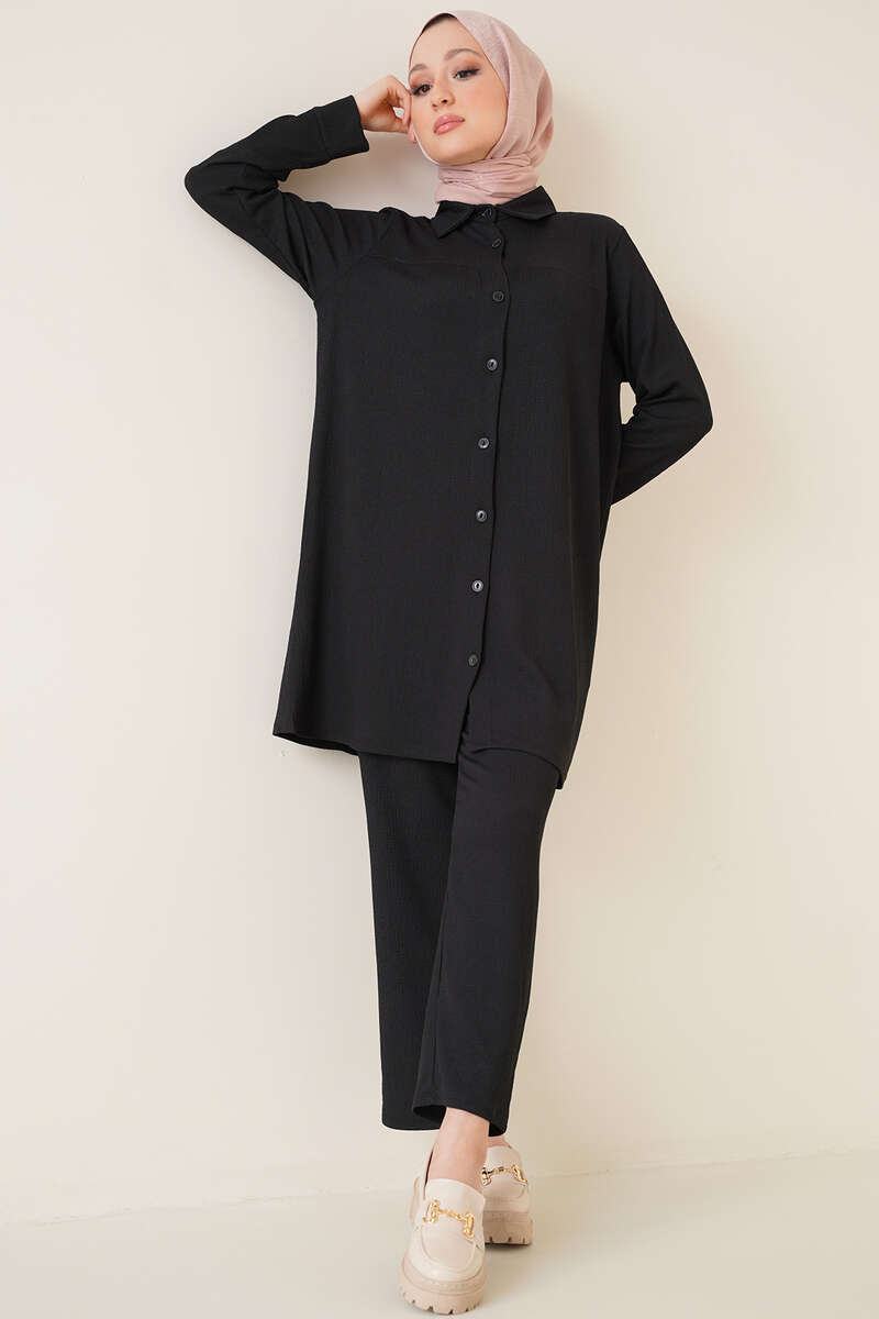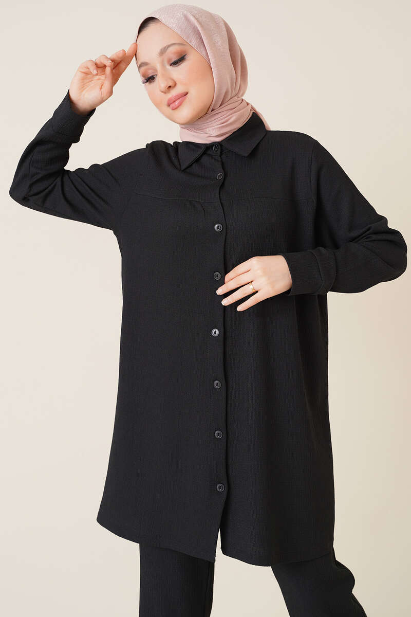 Yeni sezon ikili takım şık ve sportif görünümüyle sizler için geldi. Takımımız bürümcük yapıdadır. Gömleğimiz sade salaş tasarıma sahiptir. Önü düğmelidir. Uzundur. Pantolon beli lastikli cepsiz modeldir. Takımımız oldukça rahattır. Her ortamda rahatlıkla giyebilirsiniz. Farklı renk seçenekleri mevcuttur.