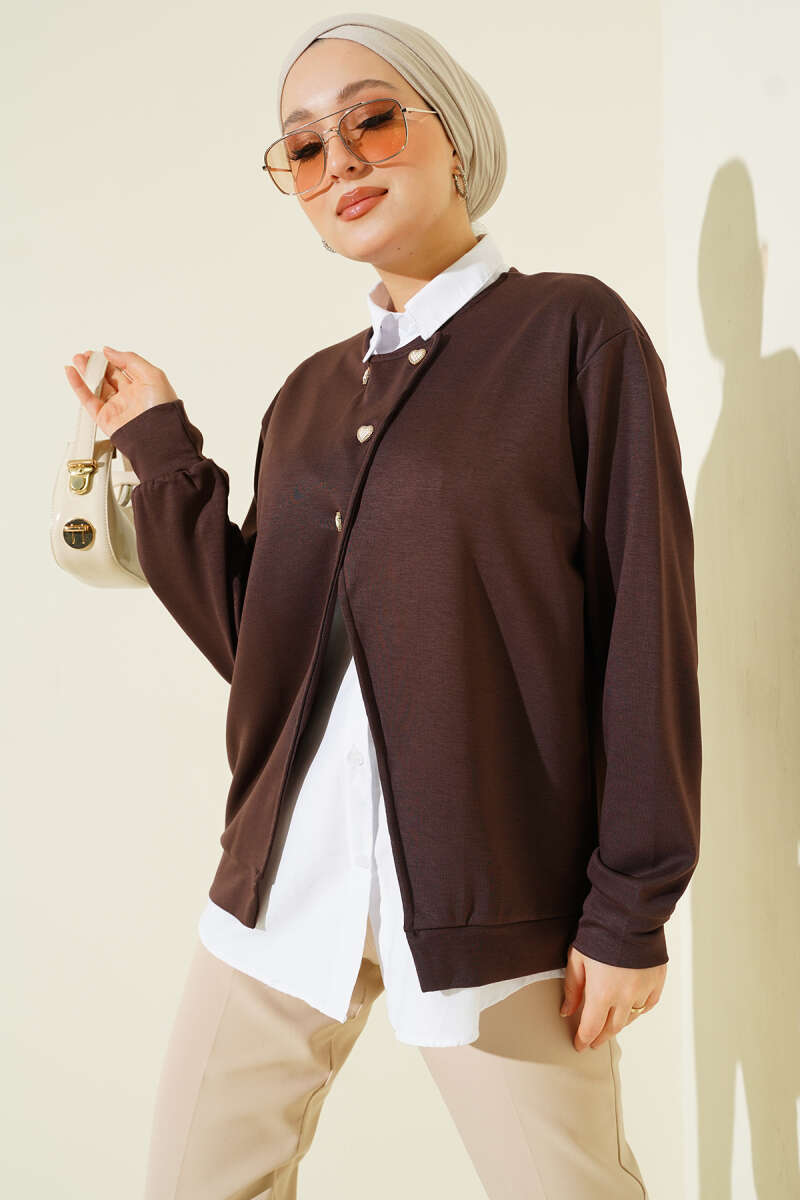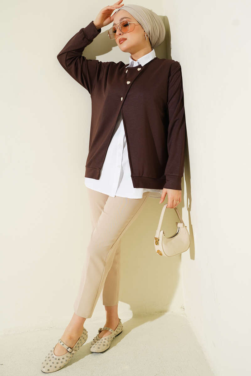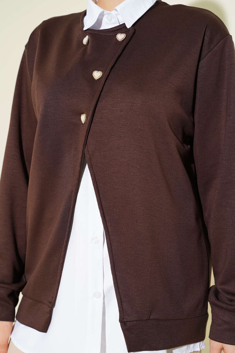Gömlekli Düğmeli Hırka İkili Takım Kahve