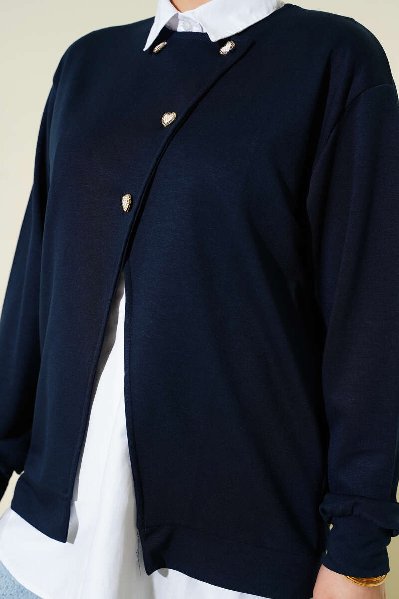 Gömlekli Düğmeli Hırka İkili Takım Lacivert
