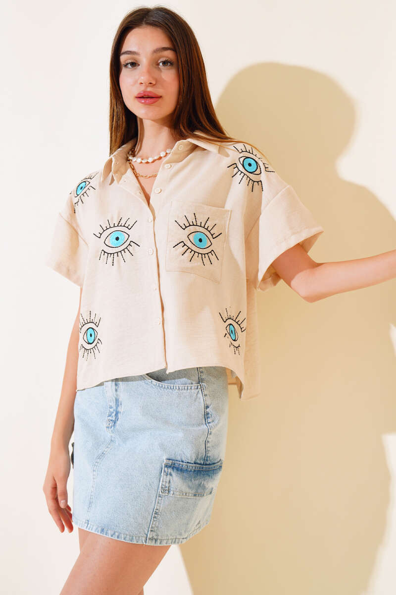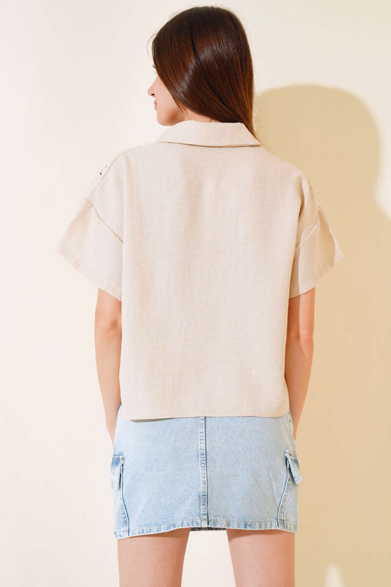 Pilise Detaylı Bej Etek