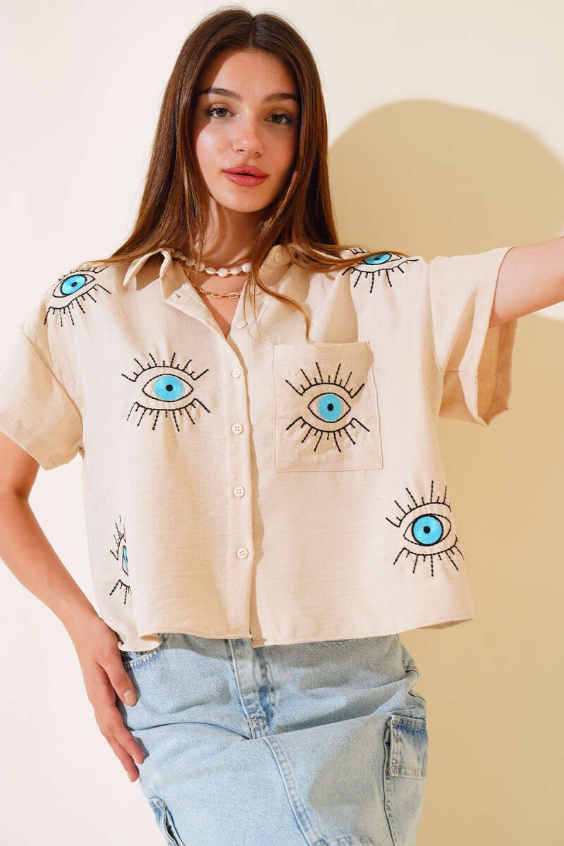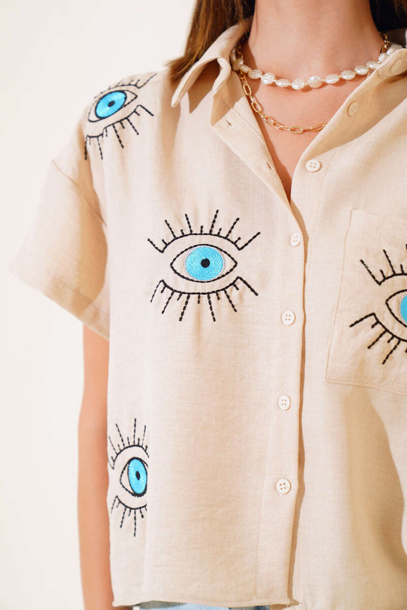 İp Detaylı Beli Lastikli Dar Paça Bej Pantolon