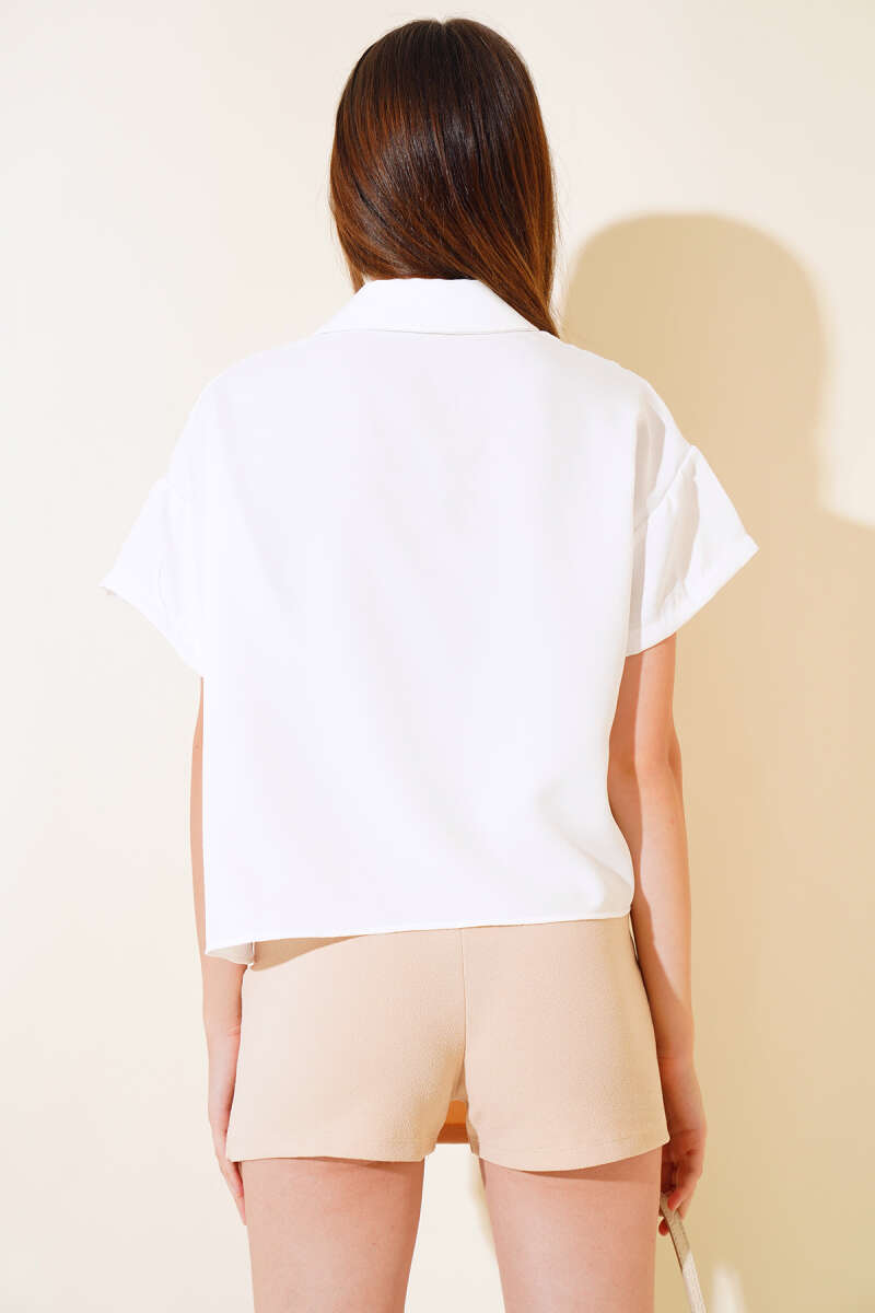 Çapraz Yaka Uzun Kol Bluz Sarı