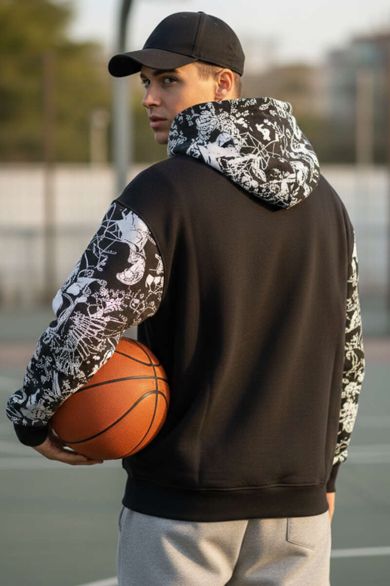 Yırtık Efektli Nakışlı Erkek Sweatshirt Siyah