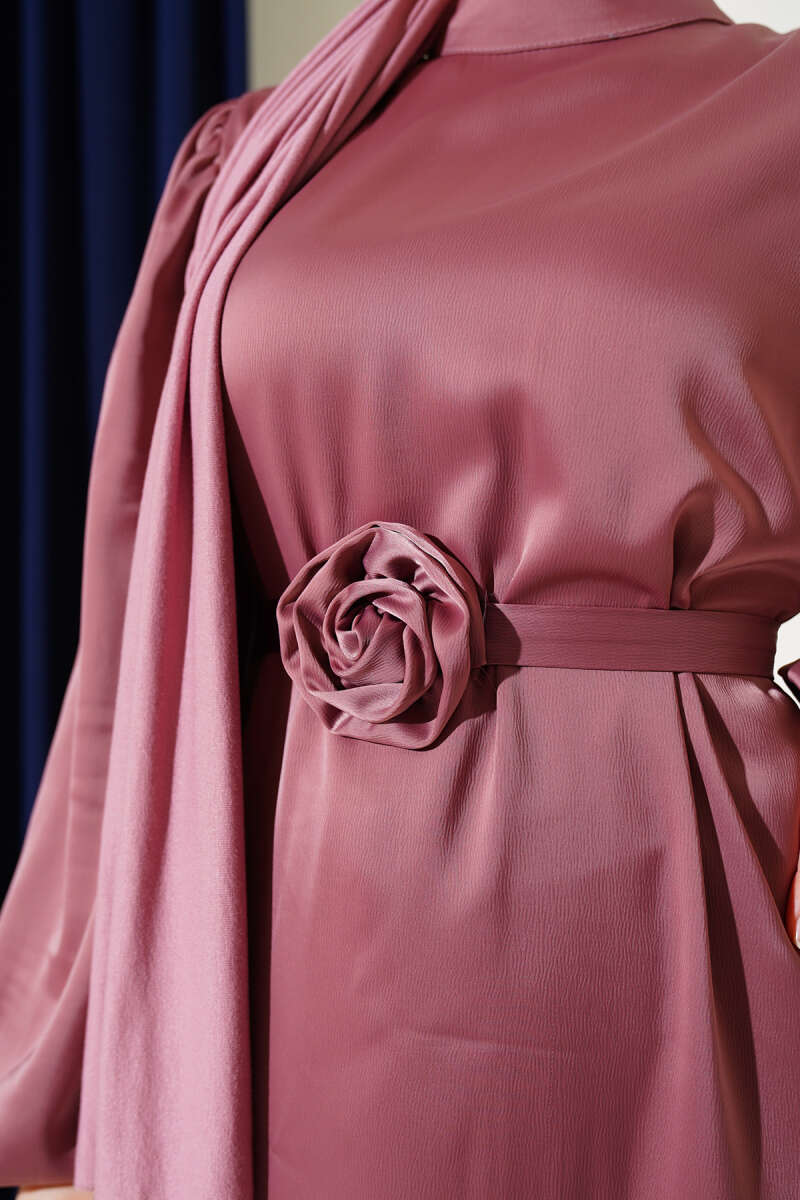 Bilek Bağlamalı Kuşaklı Abiye Elbise Haki