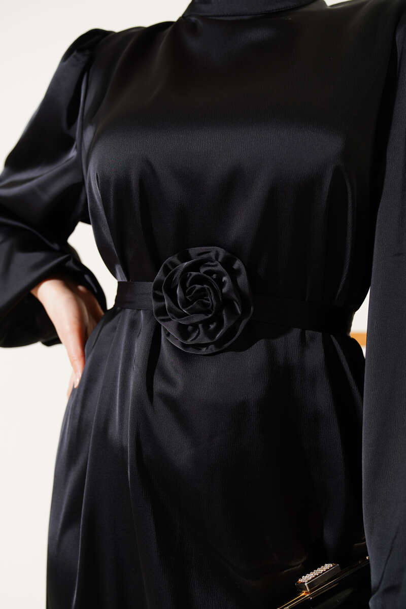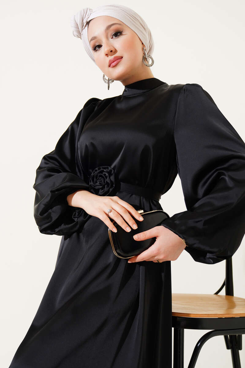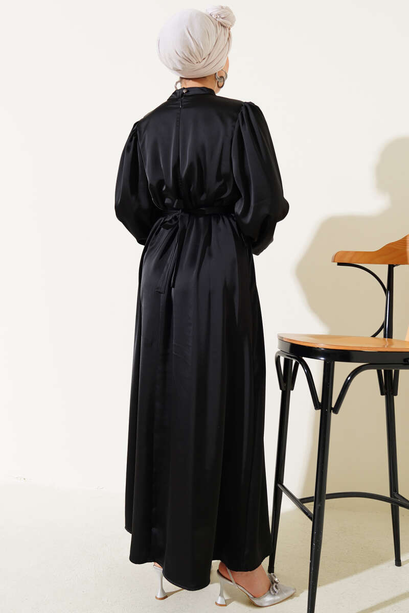 Omuz Pelerin Detaylı Abiye Elbise Siyah