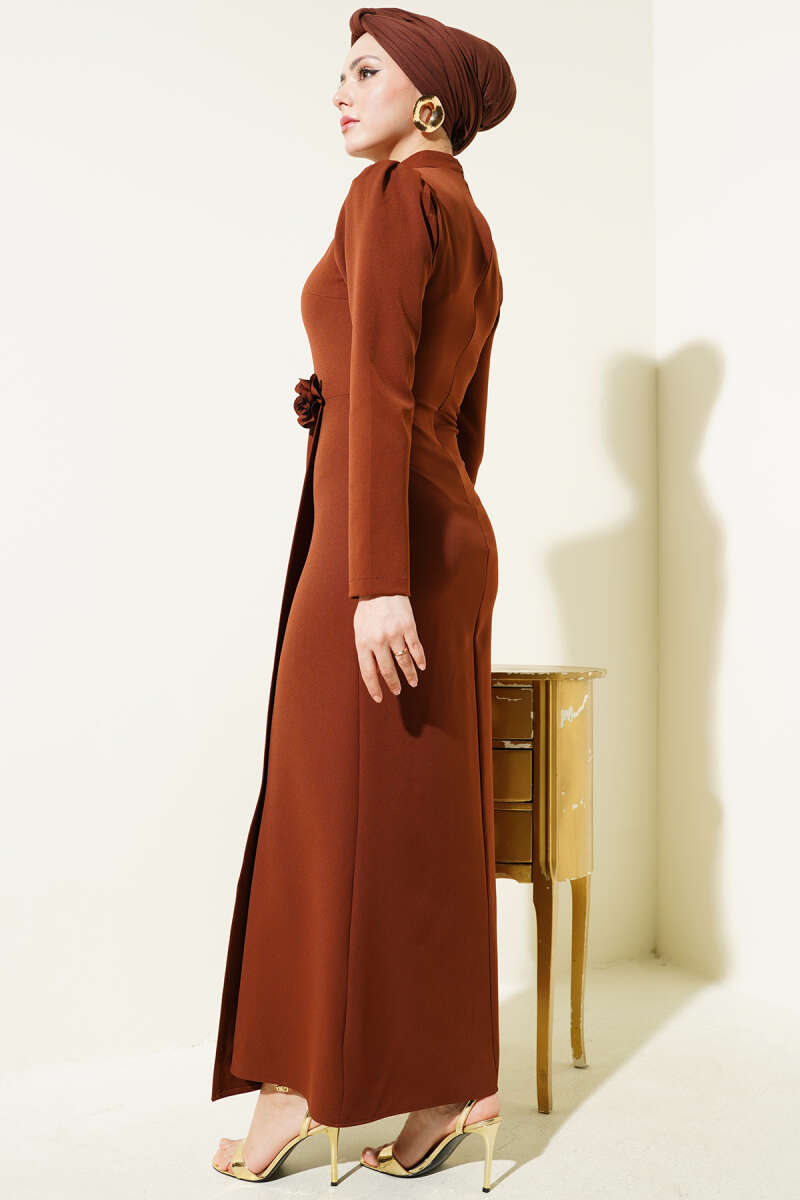 Bilek Bağlamalı Kuşaklı Abiye Elbise Haki