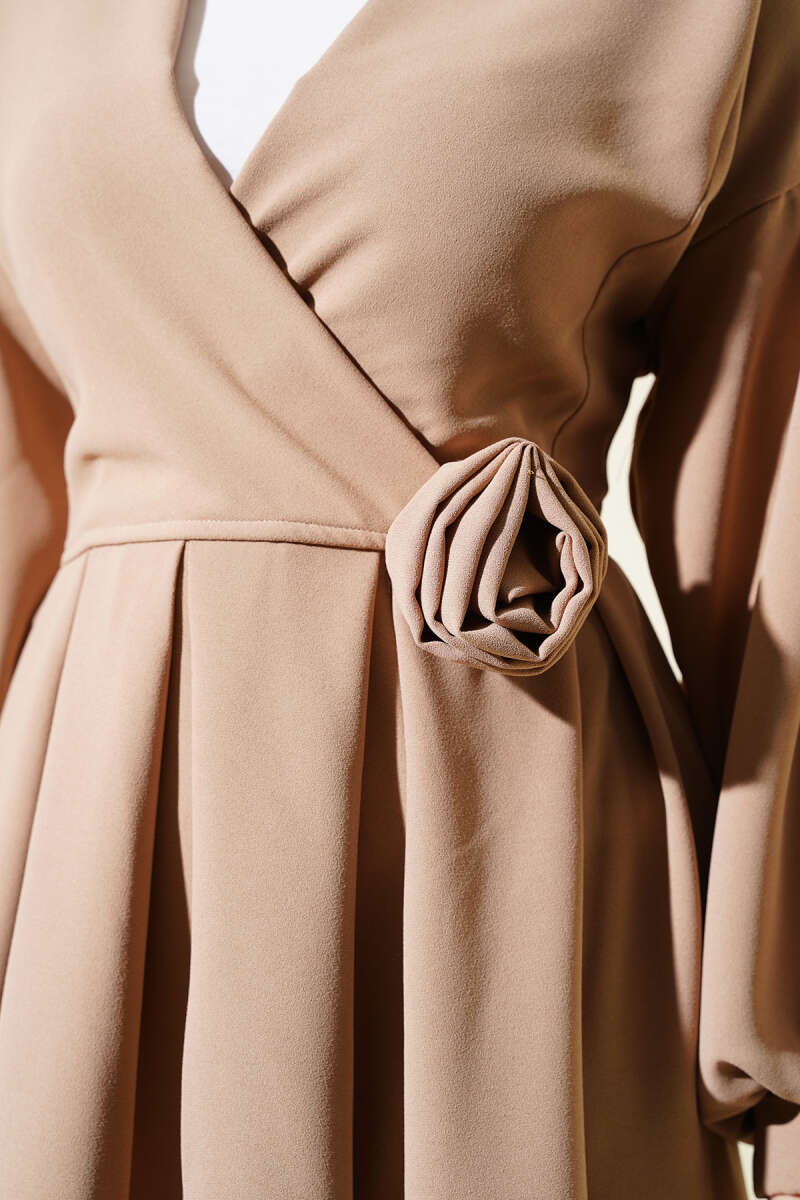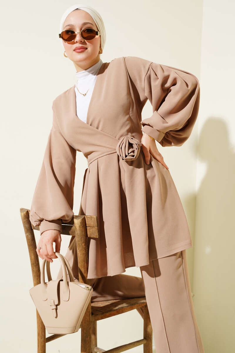 Gül Aksesuarlı Yelekli İkili Takım Haki