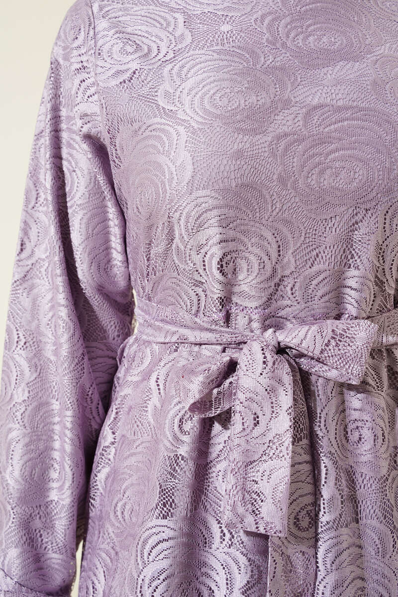 Duble Kol İp Kuşaklı Loyşa Elbise Bordo