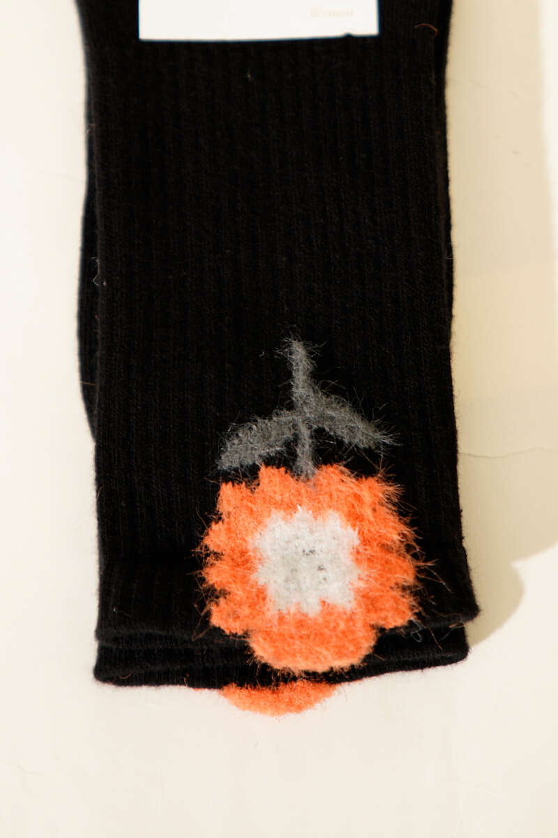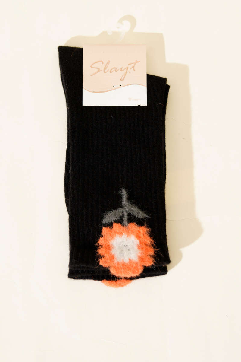 Gül Desenli Sakallı Soket Kadın Çorap Siyah