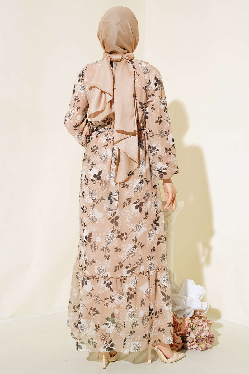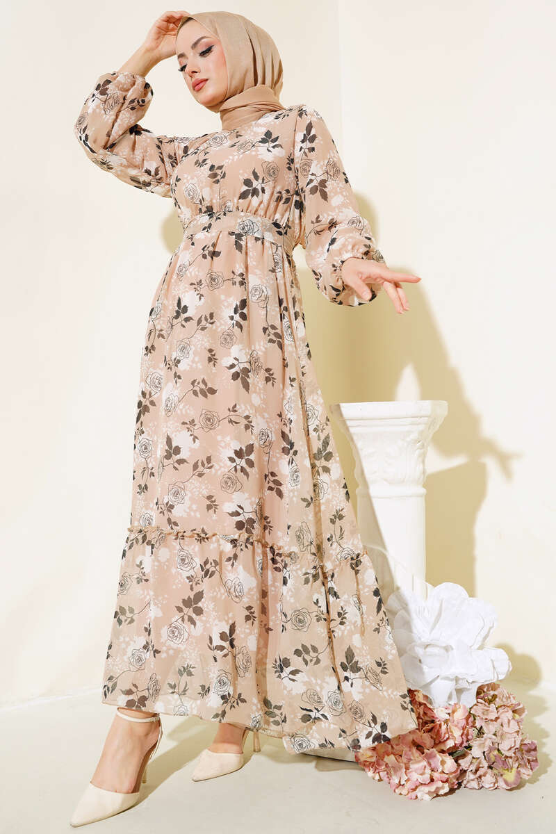 Yeni sezon elbisemiz sizlerle beraber. Elbisemizin beli ve kol bilekleri lastiklidir. Kendi kumaşından kuşağı vardır. Astarlıdır. Elbisemiz oval yakadır. Enseden düğmelidir. Gül desenleriyle şıklık kazanan elbisemiz sizi beklemektedir.