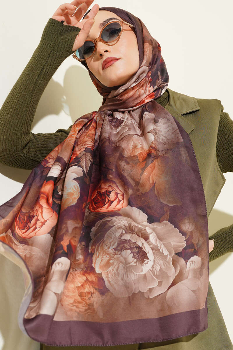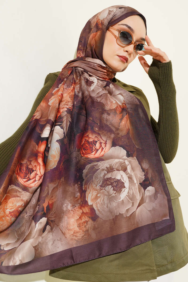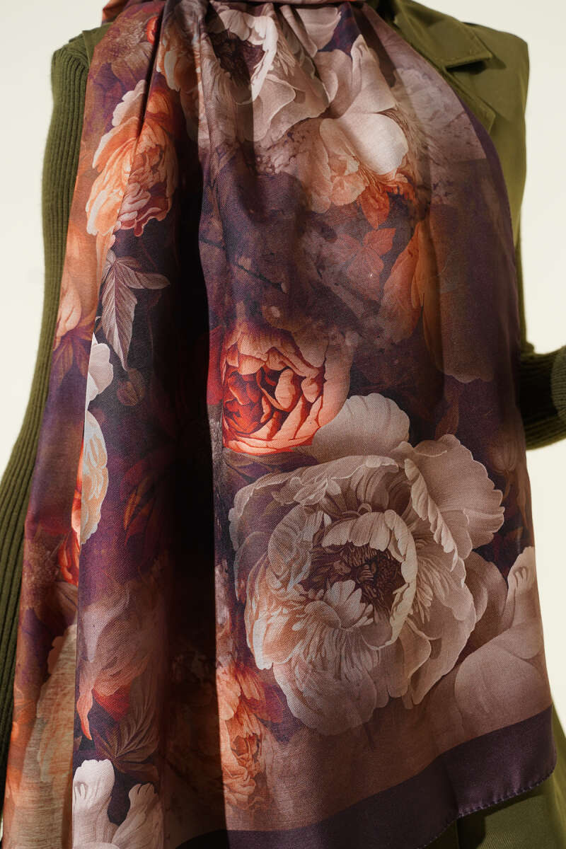 Gül Desenli Soft Şal Mürdüm