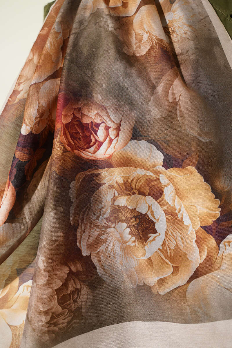Gül Desenli Soft Şal Vizon