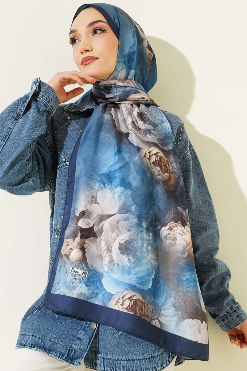 120 cm Sarmal Ebruli Eşarp İndigo