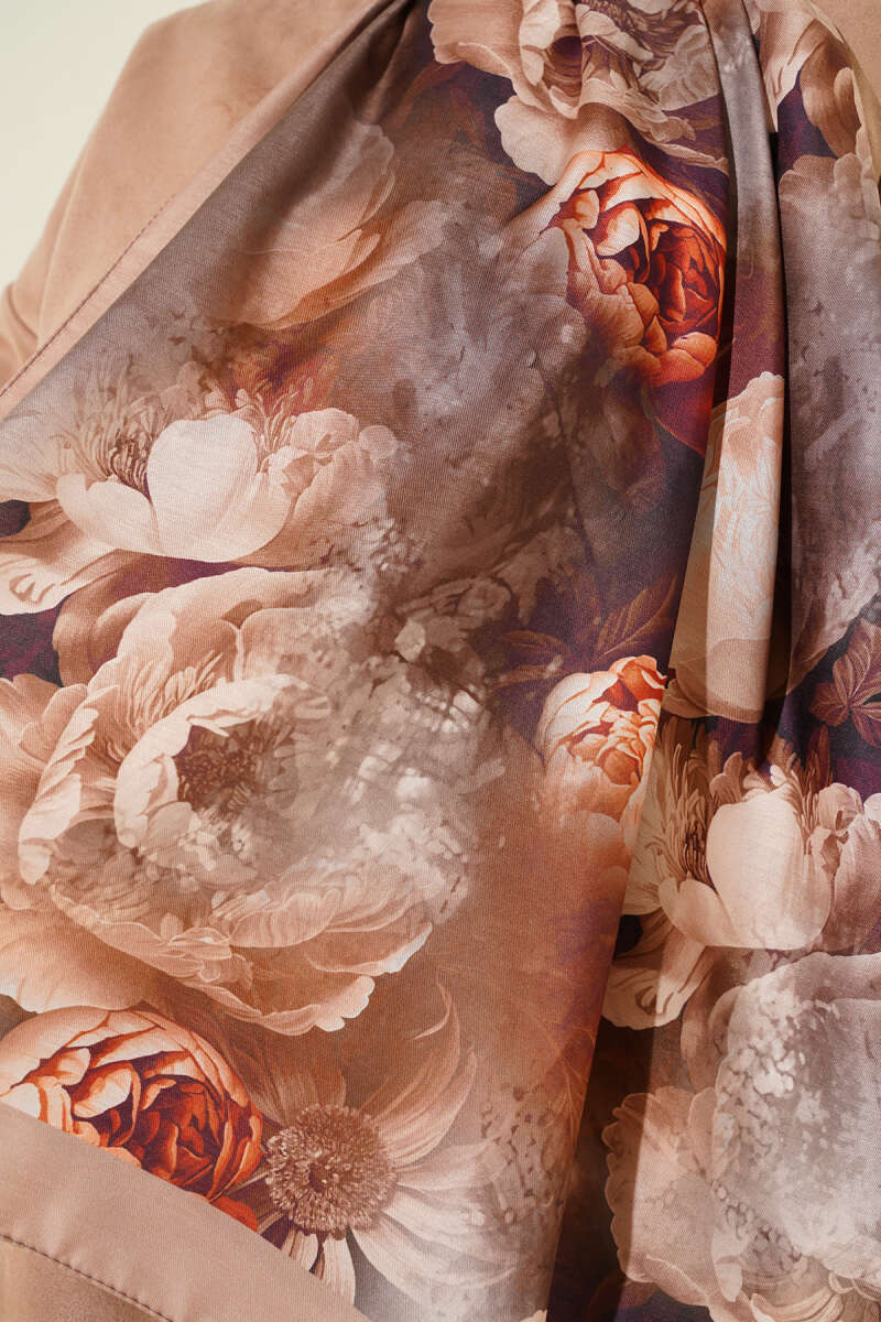 Gül Desenli Soft Şal Vizon