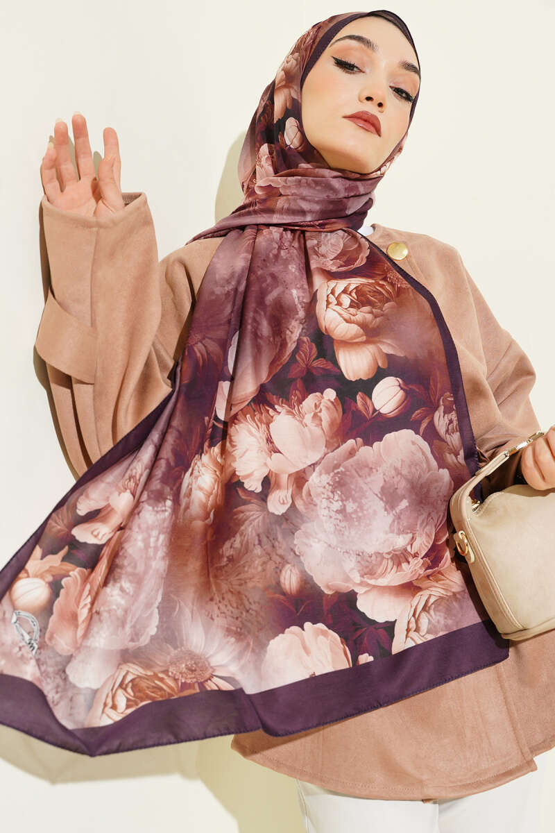 120 cm Sarmal Ebruli Eşarp Mürdüm