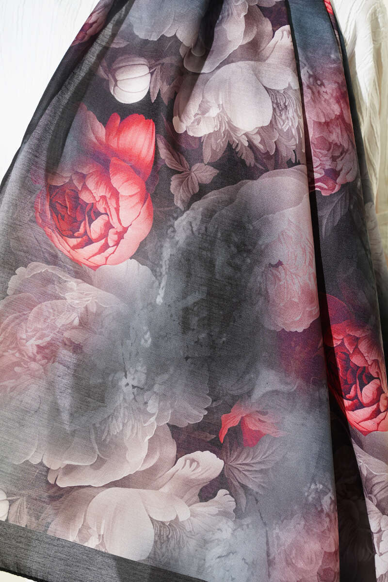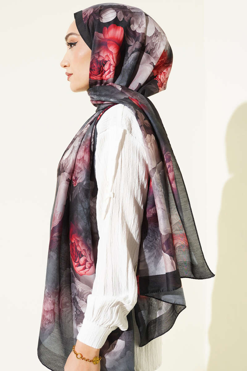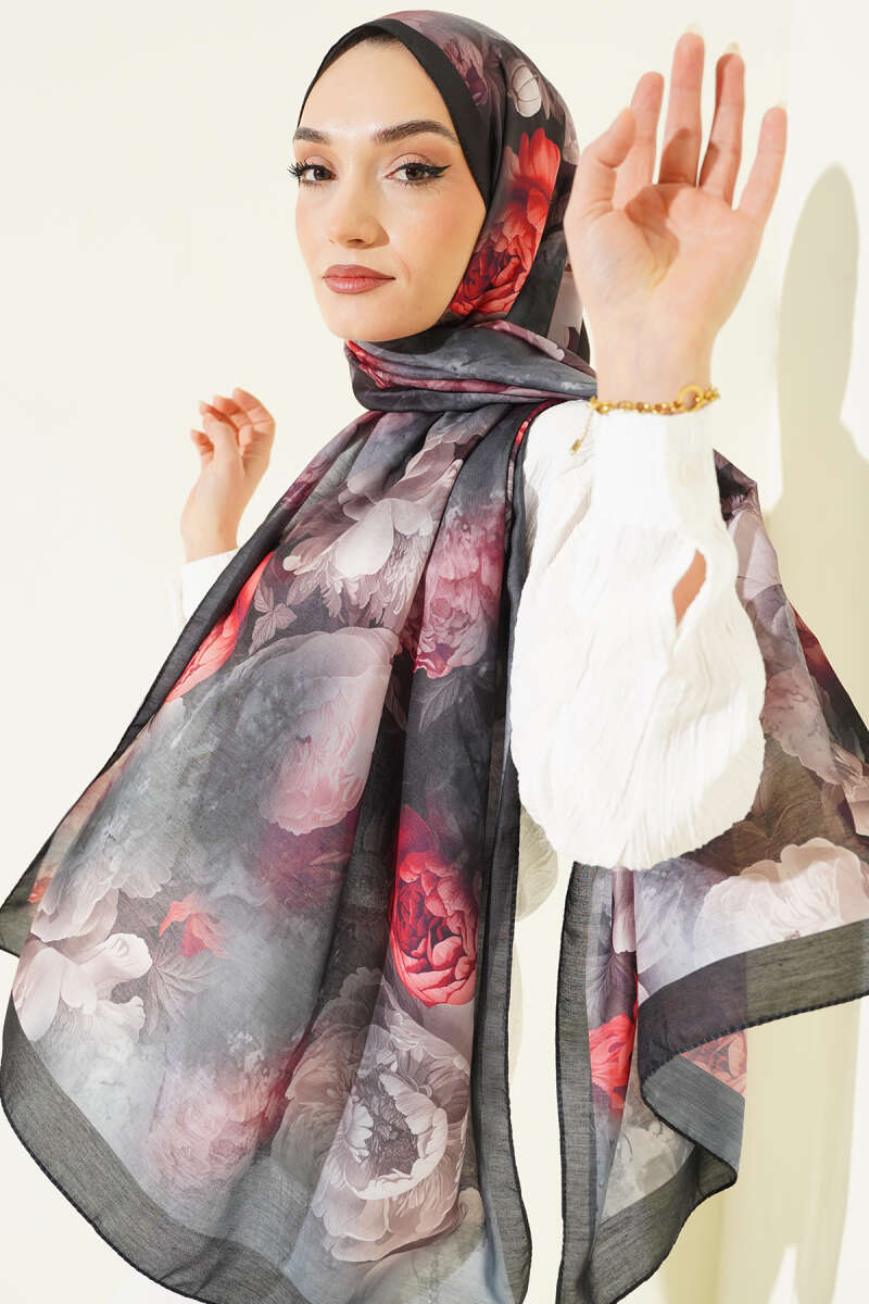 120 cm Çiçekli Soft Eşarp Siyah