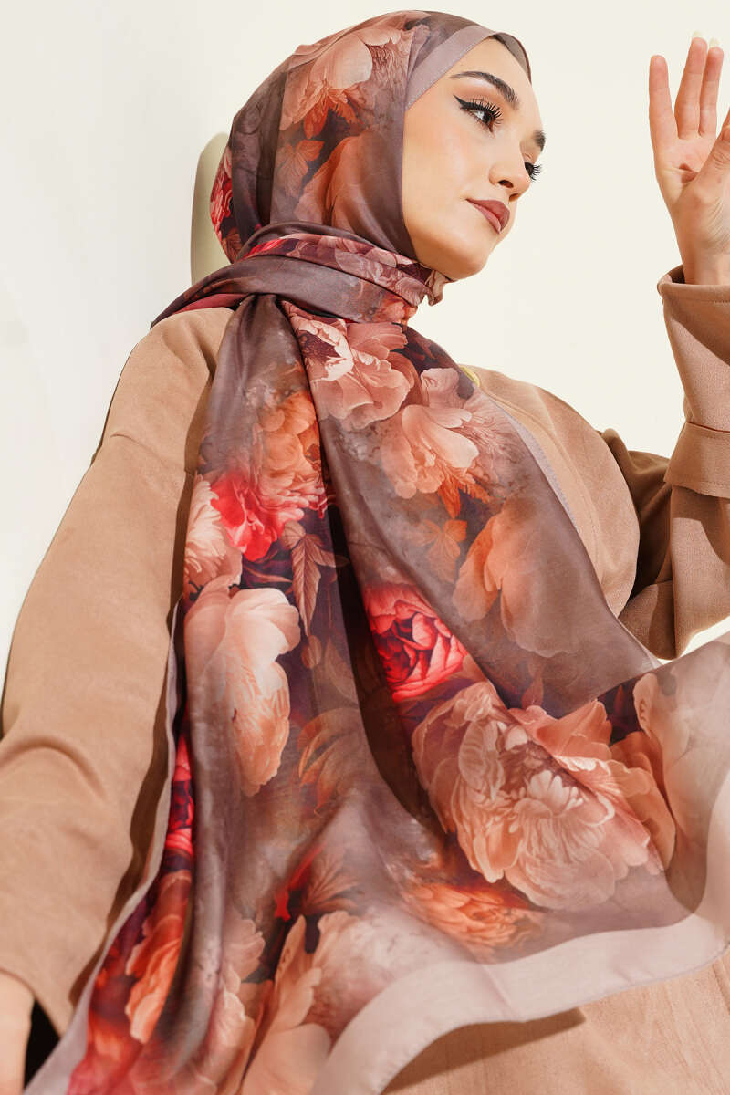 Gül Desenli Soft Şal Kum Bej