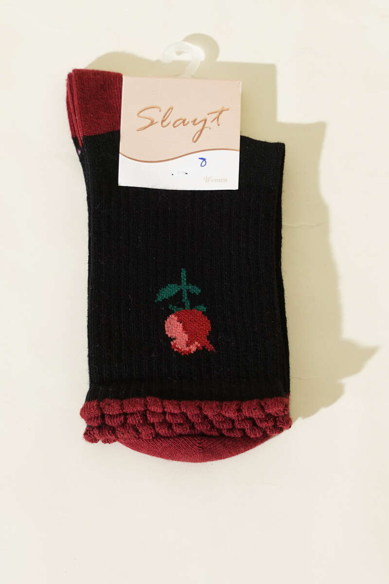 Gül Detaylı Kadın Soket Çorap Siyah