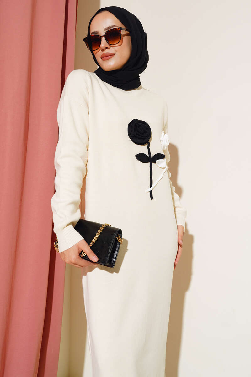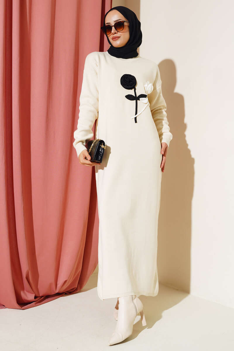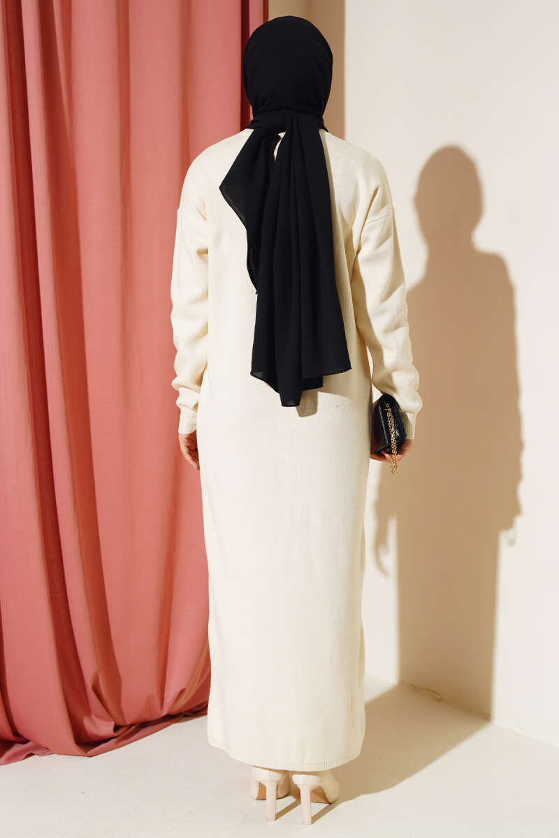 Gömlek Yaka Düğmeli Triko Elbise Nefti