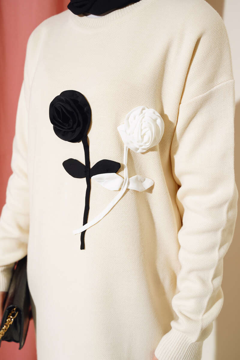 Çoban Dikiş Detaylı Triko Tunik Siyah